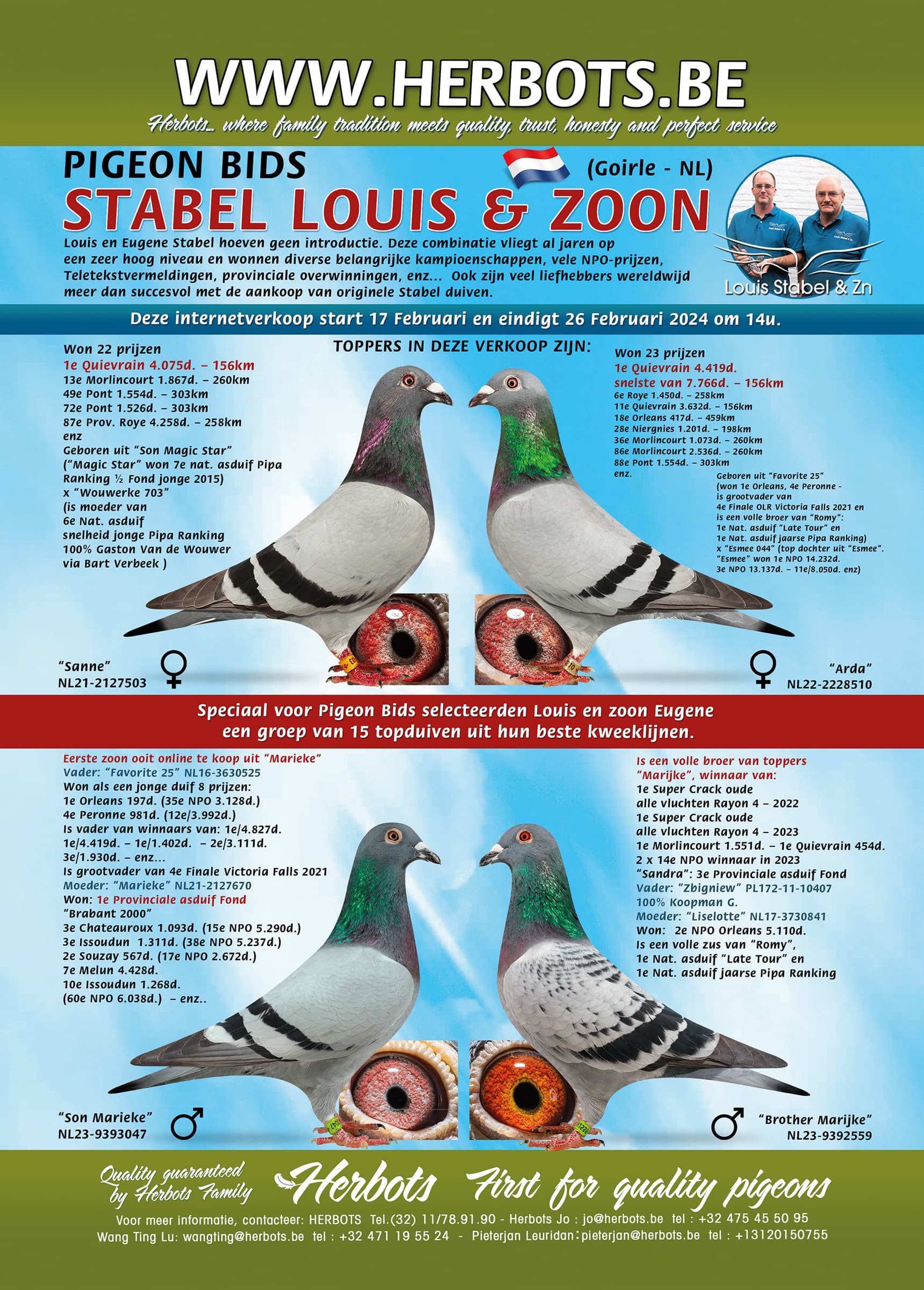 Specially for Pigeon Bids, Louis and Eugene Stabel bred and selected some classy birds all born from their best breeding lines