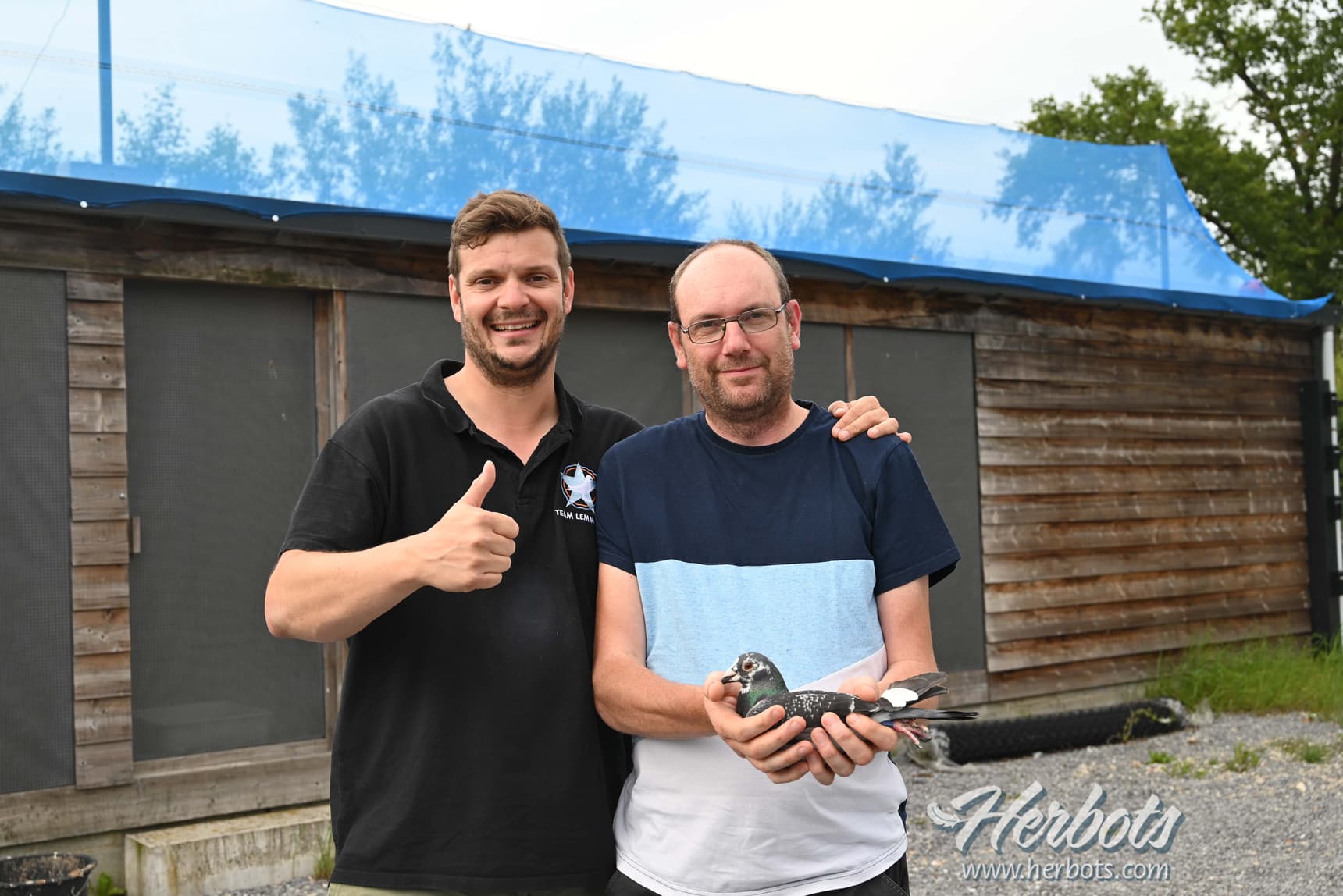 Il n'est donc pas étonnant que nous rencontrions un Ulrich très satisfait lorsque nous le félicitons pour sa victoire nationale à Souillac. "Ma précédente victoire remontait à 10 ans", commence Ulrich, "il était donc temps d'en décrocher une autre contre le plafond proverbial. Pour être honnête, j'étais un peu "à plat". Mon équipe de poules était engagée dans le championnat national d'Argenton et elle a obtenu l'un des pires résultats de ma vie. Bien que je pensais que la forme était dans le groupe, ils ont déçu. Mes espoirs se sont donc portés sur Souillac, où mes mâles étaient présentés. Les premiers rapports m'ont fait penser que les leaders nationaux se trouvaient en Flandre orientale et j'ai décidé de regarder le "Tour de France". Cependant, un rapide coup d'œil aux inscriptions en ligne m'a soudain fait penser le contraire, car un pigeon précoce a également été pointé à Halen. Mon premier raisonnement était donc erroné et j'ai décidé de sortir quand même pour attendre mes coureurs de Souillac. Les abreuvoirs ont été rafraîchis et lorsque tout le travail a été fait, j'ai servi un autre pipi rapide. Mon besoin naturel venait à peine de commencer lorsque j'ai vu un pigeon passer au-dessus de ma tête.