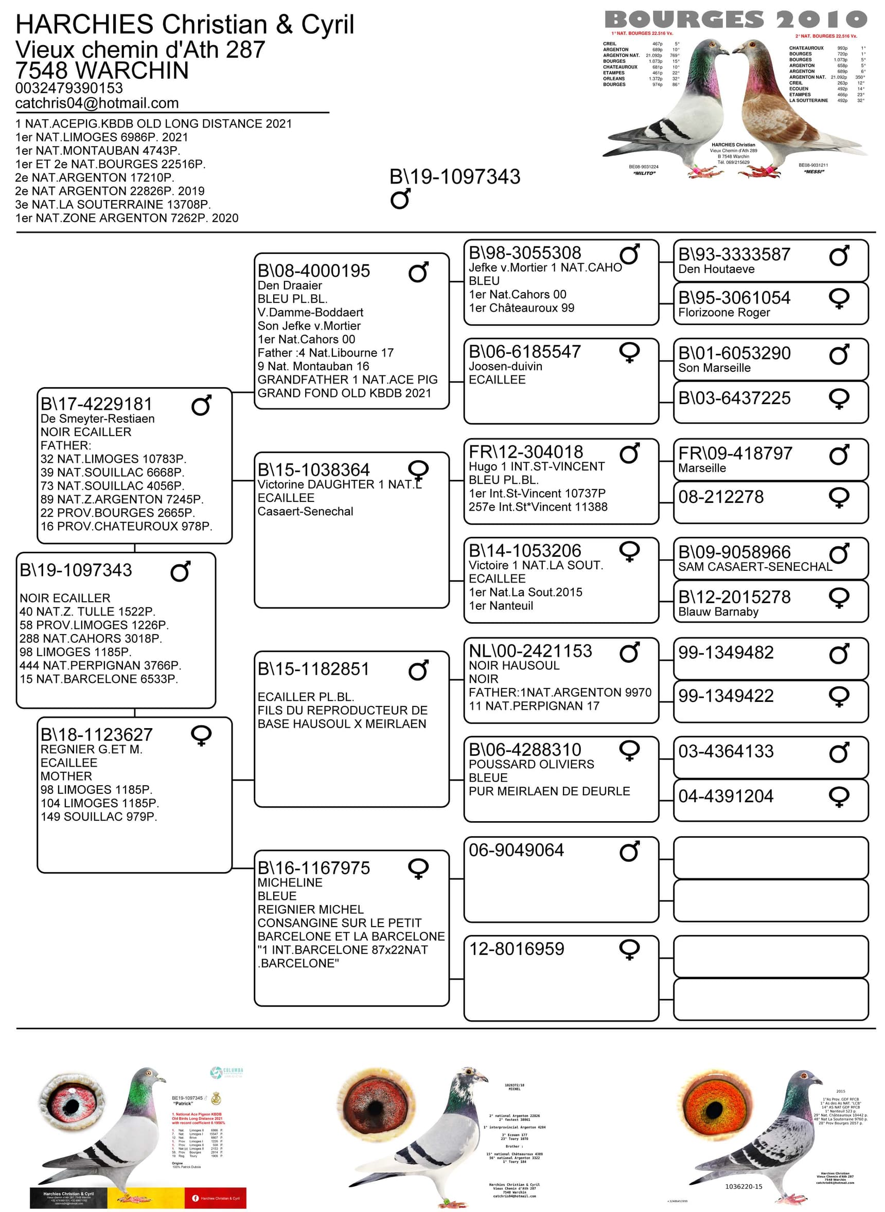 Regroupant leurs forces respectives en 2021, pour former le tandem ‘Christian & Cyril Harchies’, la saison 2021 sera extraordinaire et restera marquée dans les annales colombophilies belges. En effet, cette année-là, ils remportent leur 3ème victoire nationale en découvrant un véritable crack ‘PATRICK’ BE19-1097345 (pigeon élevé par Patrick Dubois de Gaurain) et qui tenez-vous bien, prestera : le 12ème Nat. Brive (8.807P), le 7ème National Limoges I (15.547P) et finira en beauté sa saison avec le 1er National Limoges II (6.986P). Ce ‘PATRICK’ est devenu 1er As-Pigeon National Fond RFCB 2021, en réalisant un coefficient ‘incroyable et record’ de 0,1956%, pulvérisant ainsi le meilleur coefficient belge de tous les temps (0,2396%) détenu jusque-là par le célèbre pigeon ‘ARMANDO’ (1 er As-Pigeon National Fond RFCB 2018) de Joël Verschoot et inutile de vous dire que le coefficient record de ‘PATRICK’ sera très difficile à battre.