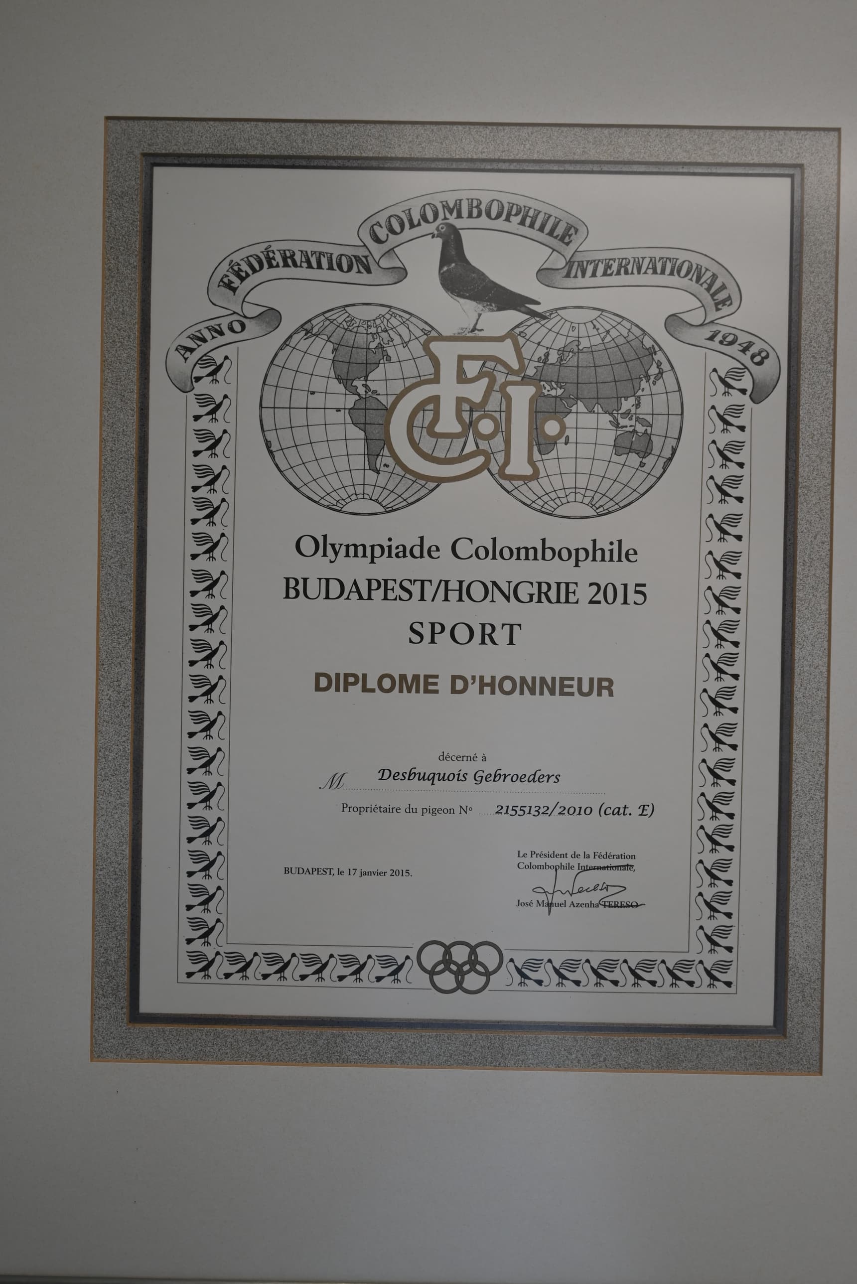 Parmi ces quatre pigeons ayant dépassé les 1 200 m/min, on retrouve « Petros » (B15-2060079) de l’élevage Desbuquois Brothers de Kapelle-Op-Den-Bos. Lâché à 8h35 pour un parcours de 754,050 km, « Pedros » a franchi la ligne d’arrivée en 18h47 et 45 secondes. Cela lui a valu une première victoire provinciale retentissante, et au niveau national, il n'était devancé que par le vainqueur national de Faes-Wils à Mol.