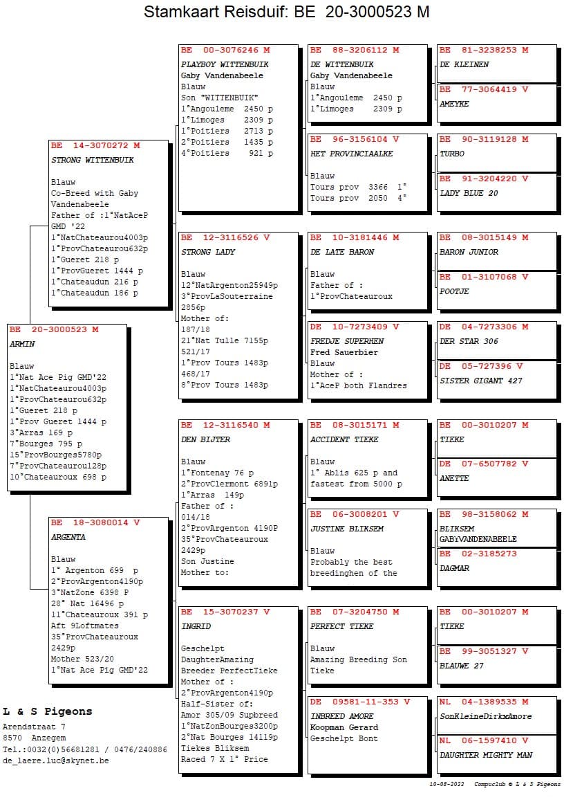 Quelle classe ! Il a non seulement remporté le 1er prix national à Châteauroux, mais il a également été honoré récemment à Malines en tant qu'as national du pigeon de demi-fond KBDB. La lutte pour ce titre était très serrée car plusieurs candidats étaient prêts à prendre le titre d'as pigeon national juste devant "Armin". Mais la classe d'"Armin" ne s'est pas laissée impressionner et il a clôturé son dernier vol en beauté en remportant la victoire nationale. On peut parler d'une fermeture de stature et d'un bâillonnement de toute la concurrence.