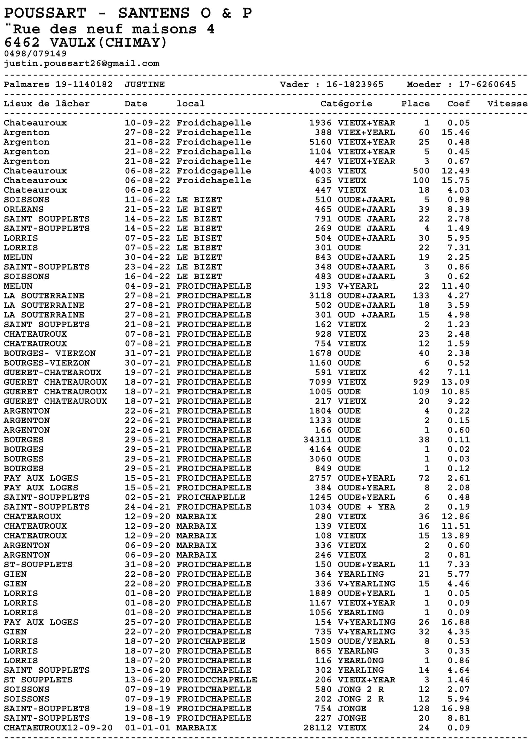 Olivier & Justin Poussart – Vaulx-Les-Chimay, AS-pigeon national Petit Demi-Fond.