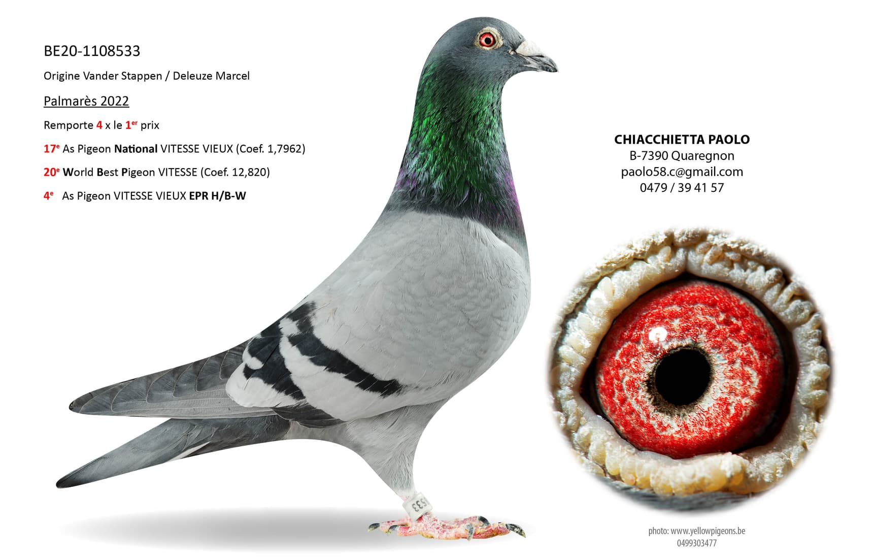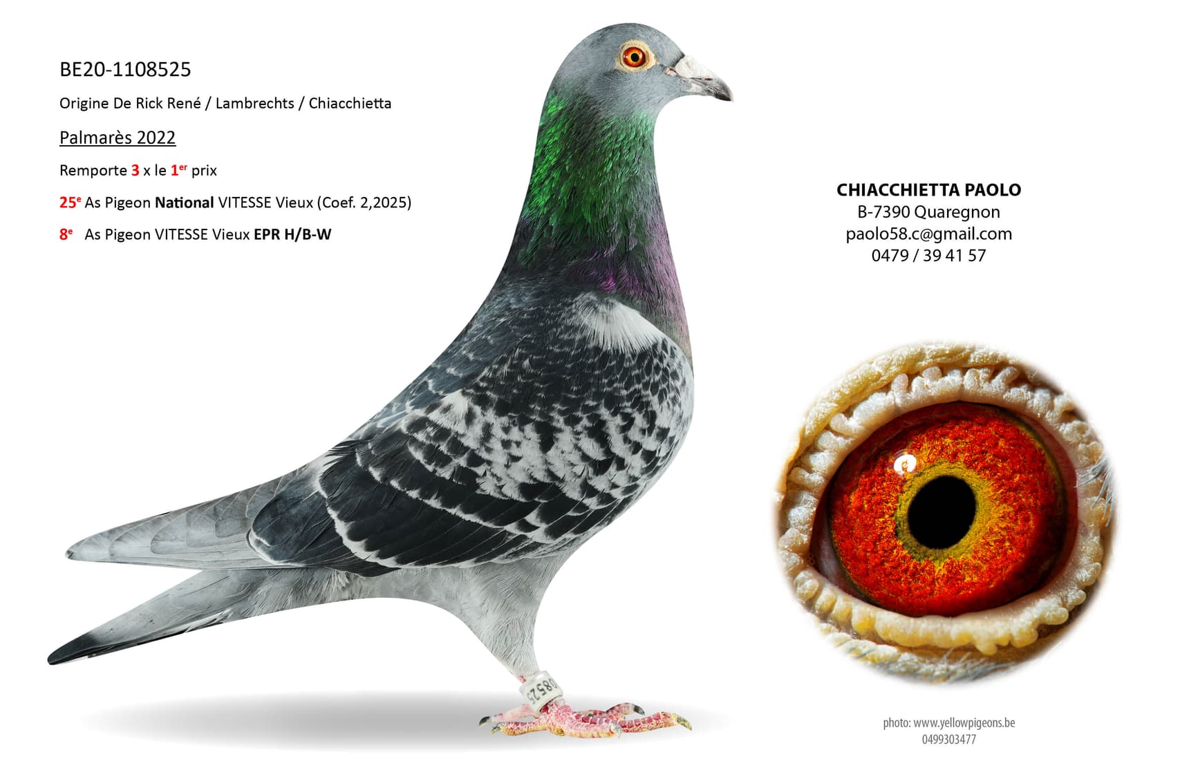 Propre frère du “BE 20-1108540” 29 As pigeon Nat vitesse yearlings RFCB 2021