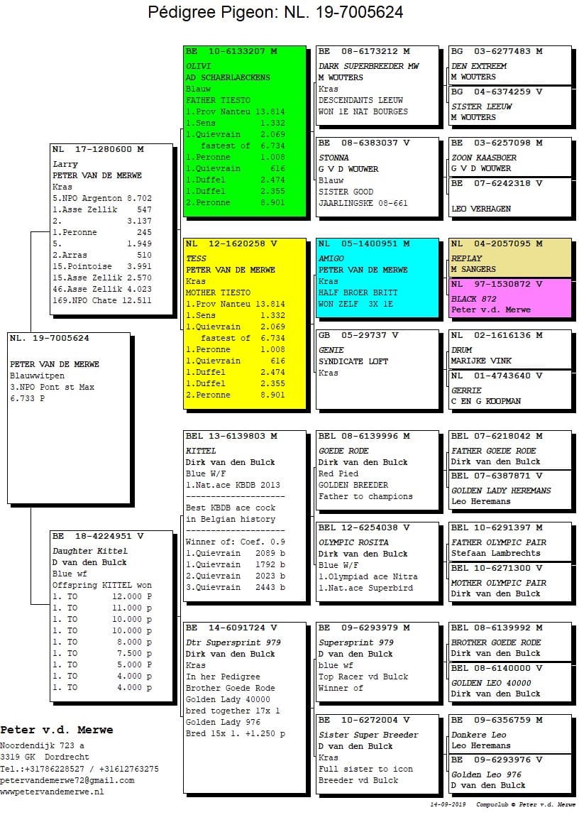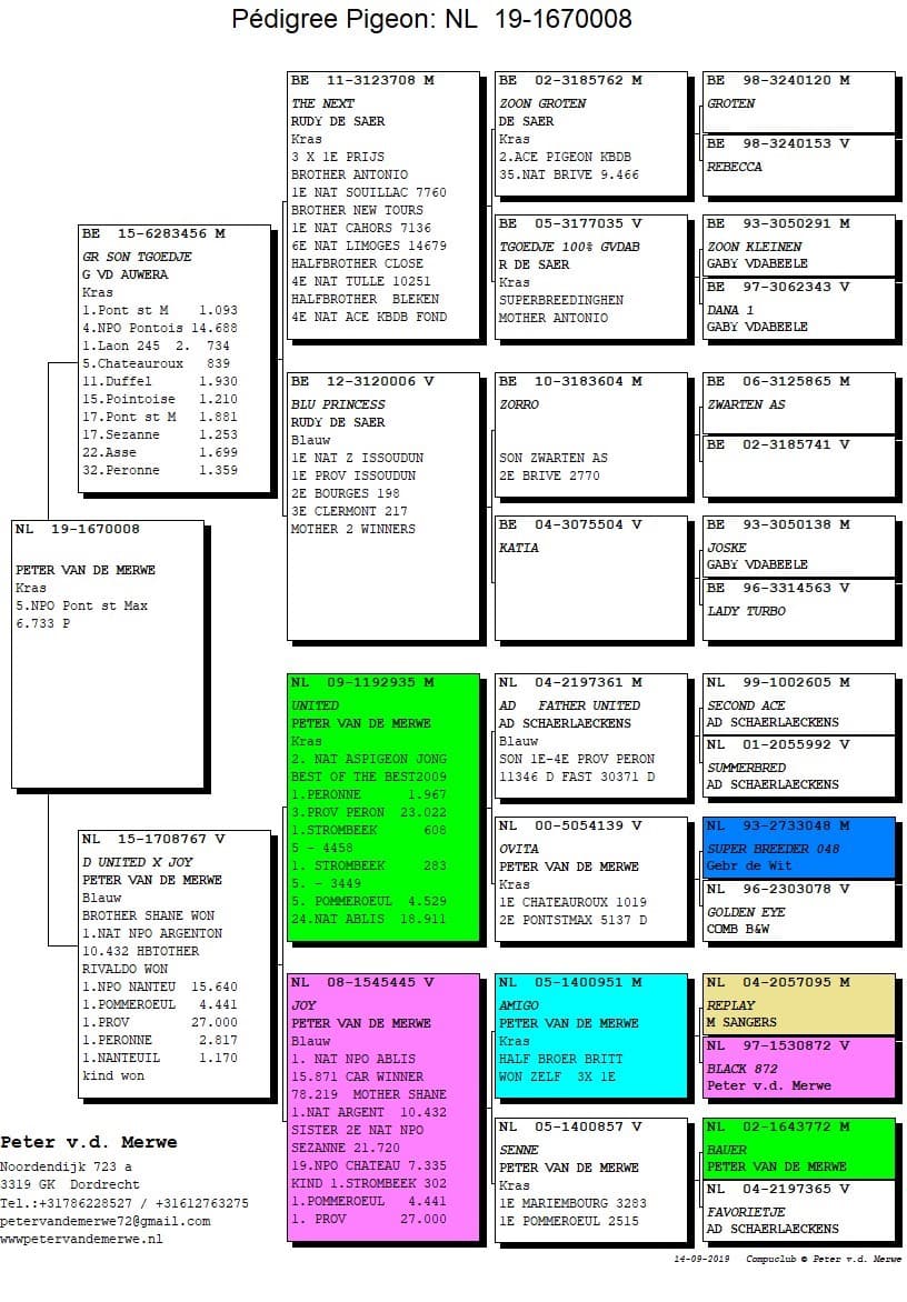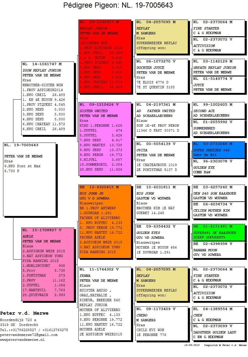 In 2015 all racing and breeding pigeons were sold and he restarted with youngsters. This huge challenge became the ultimate confirmation of the power of this strain. In the sale there were no less than 10 NPO-winners. And it didn’t have much or no negative influence on the results who continued being marvellous as ever before.