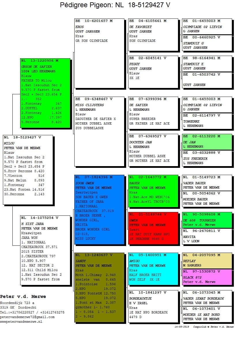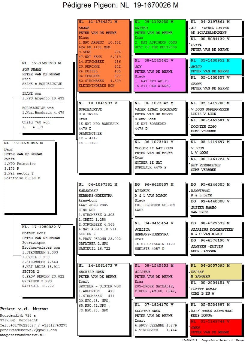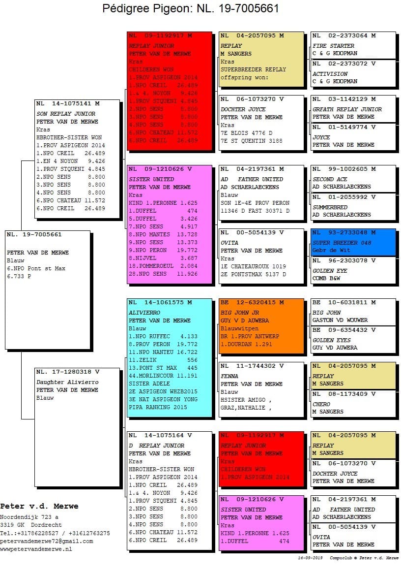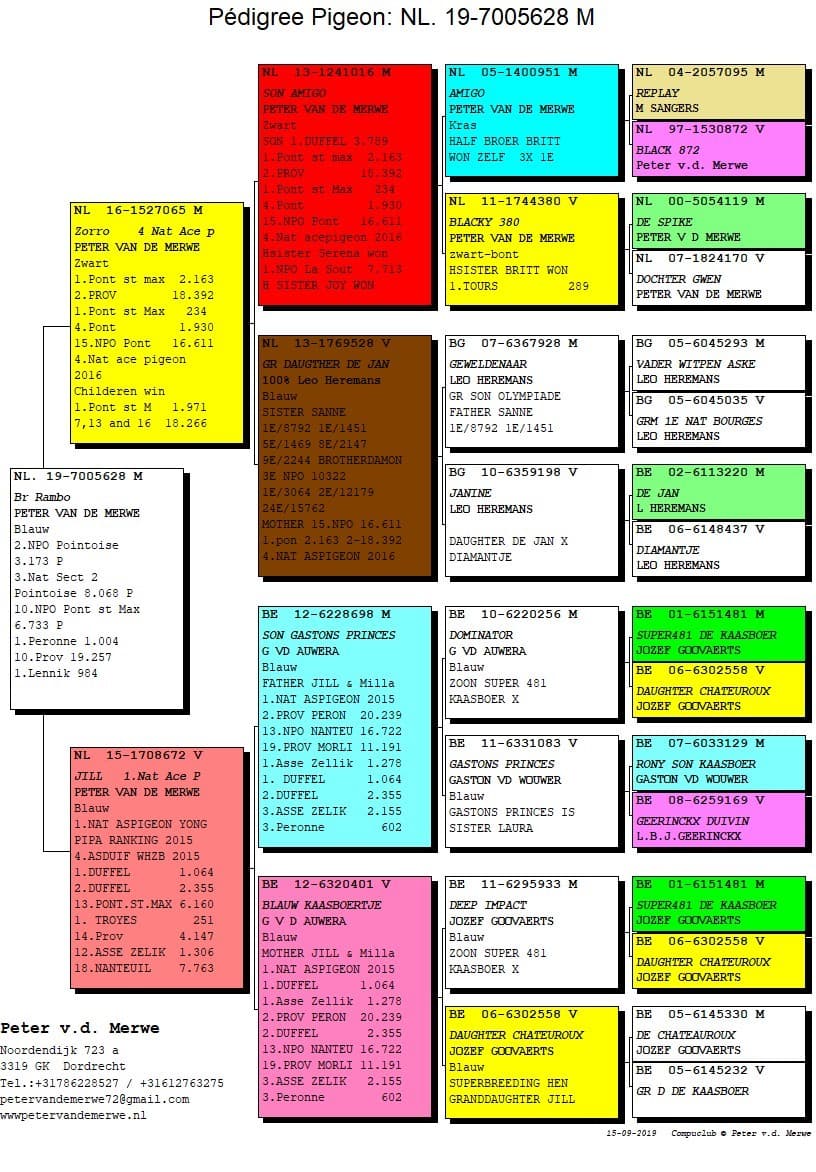 In 2015 all racing and breeding pigeons were sold and he restarted with youngsters. This huge challenge became the ultimate confirmation of the power of this strain. In the sale there were no less than 10 NPO-winners. And it didn’t have much or no negative influence on the results who continued being marvellous as ever before.