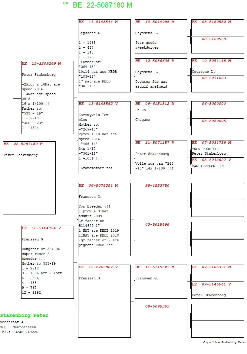 Chimay 1.282 old birds : 2,5,11,12,13,68,… 12/19
