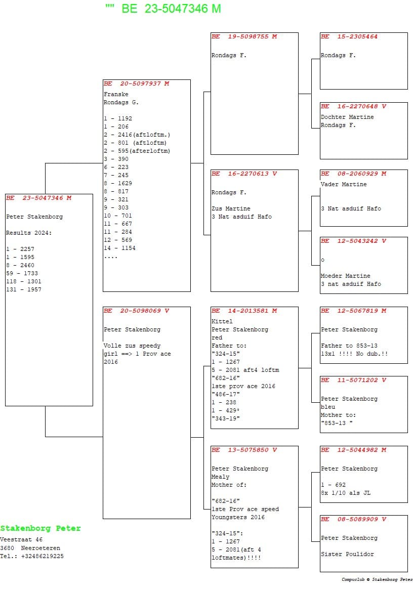 Just describe the start of 2024 in a few sentences, several 1st prizes regionally, namely 10 pieces including doubles and 60 pigeons per 100 races in 6 weeks, which means that 10 pigeons per 100 have flown every week. The results are there, the condition is great and I think there is still a lot of music in the coming weeks.