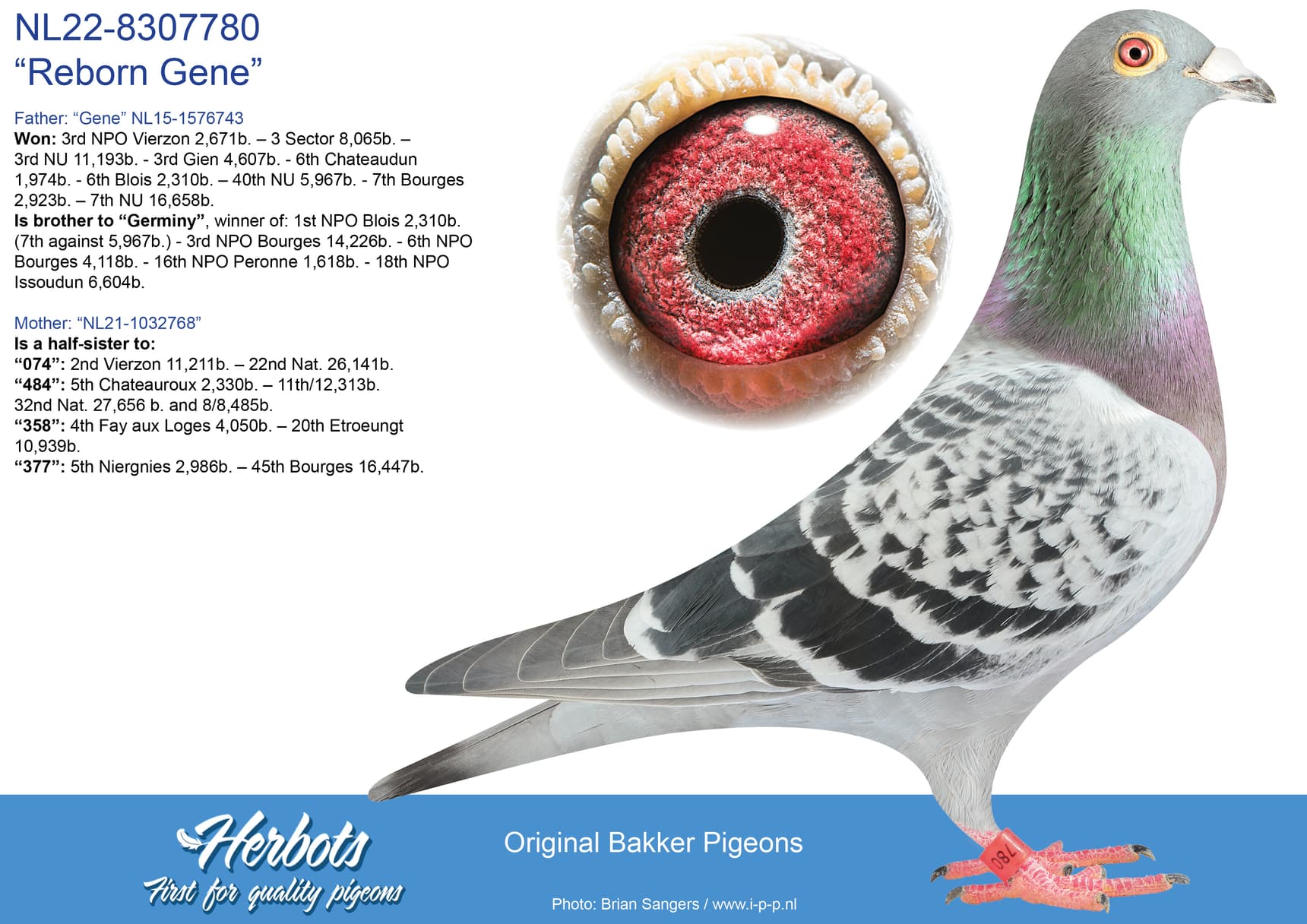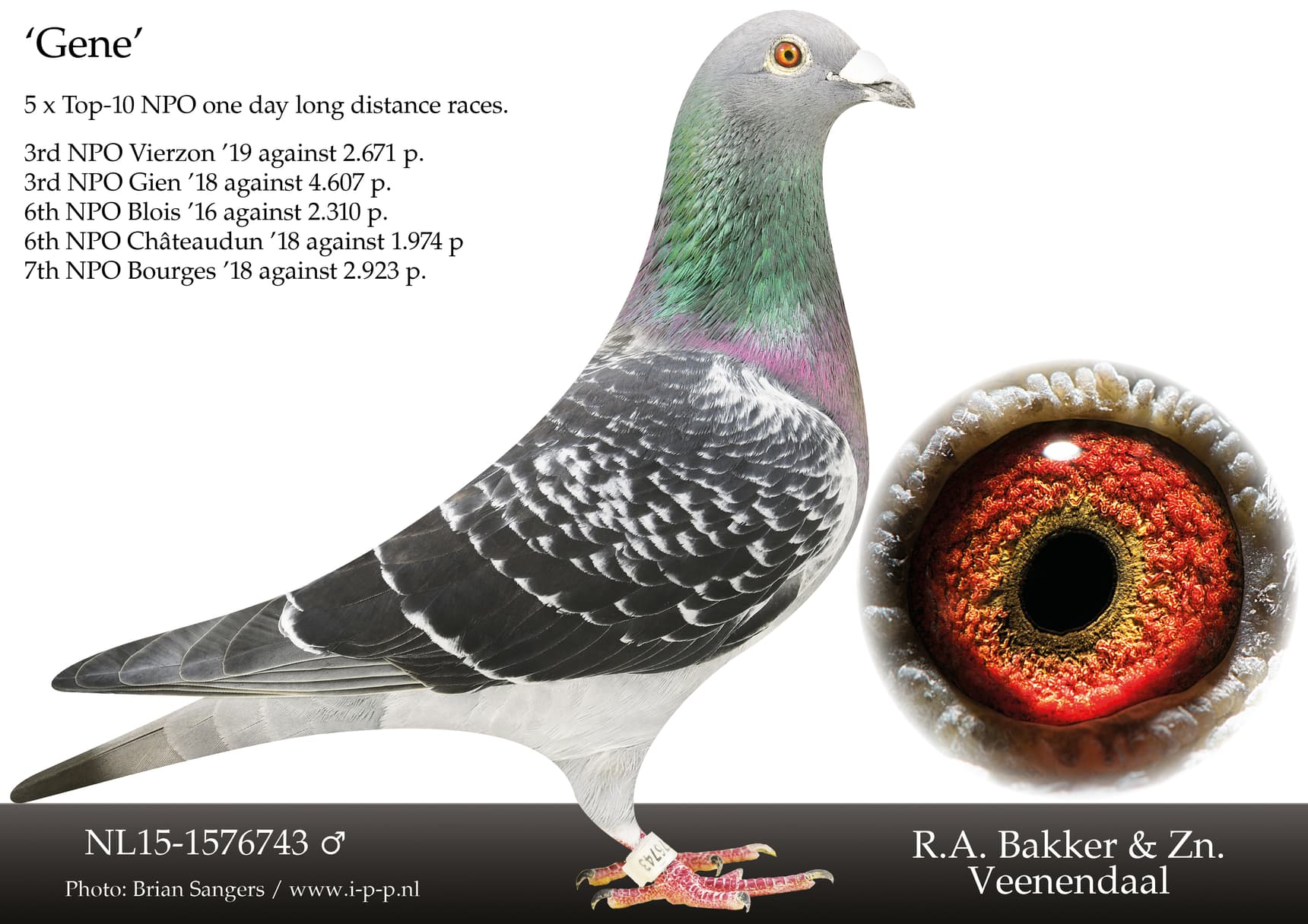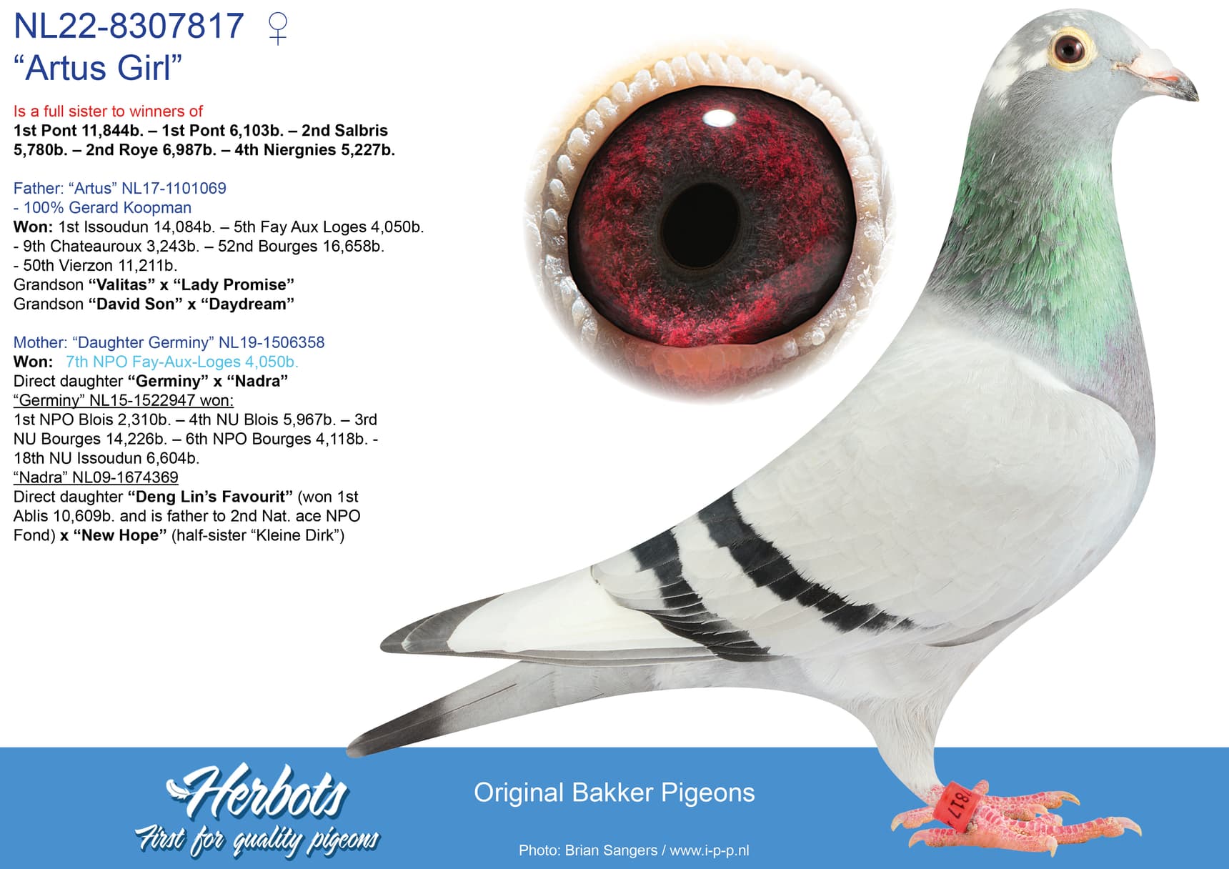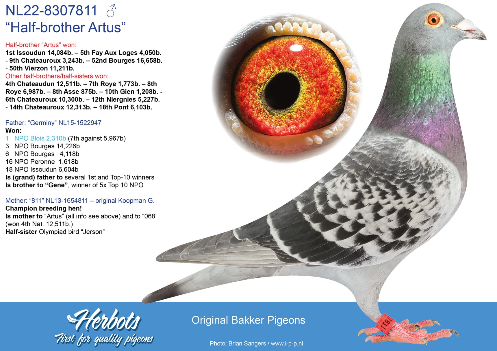 “Artus” already is father to 1st price winner against 11.844 pigeons, 1st price winner 6.103 pigeons, 2nd price against 6.987 pigeons and 2nd price winner NPO Salbris against 5.780 pigeons