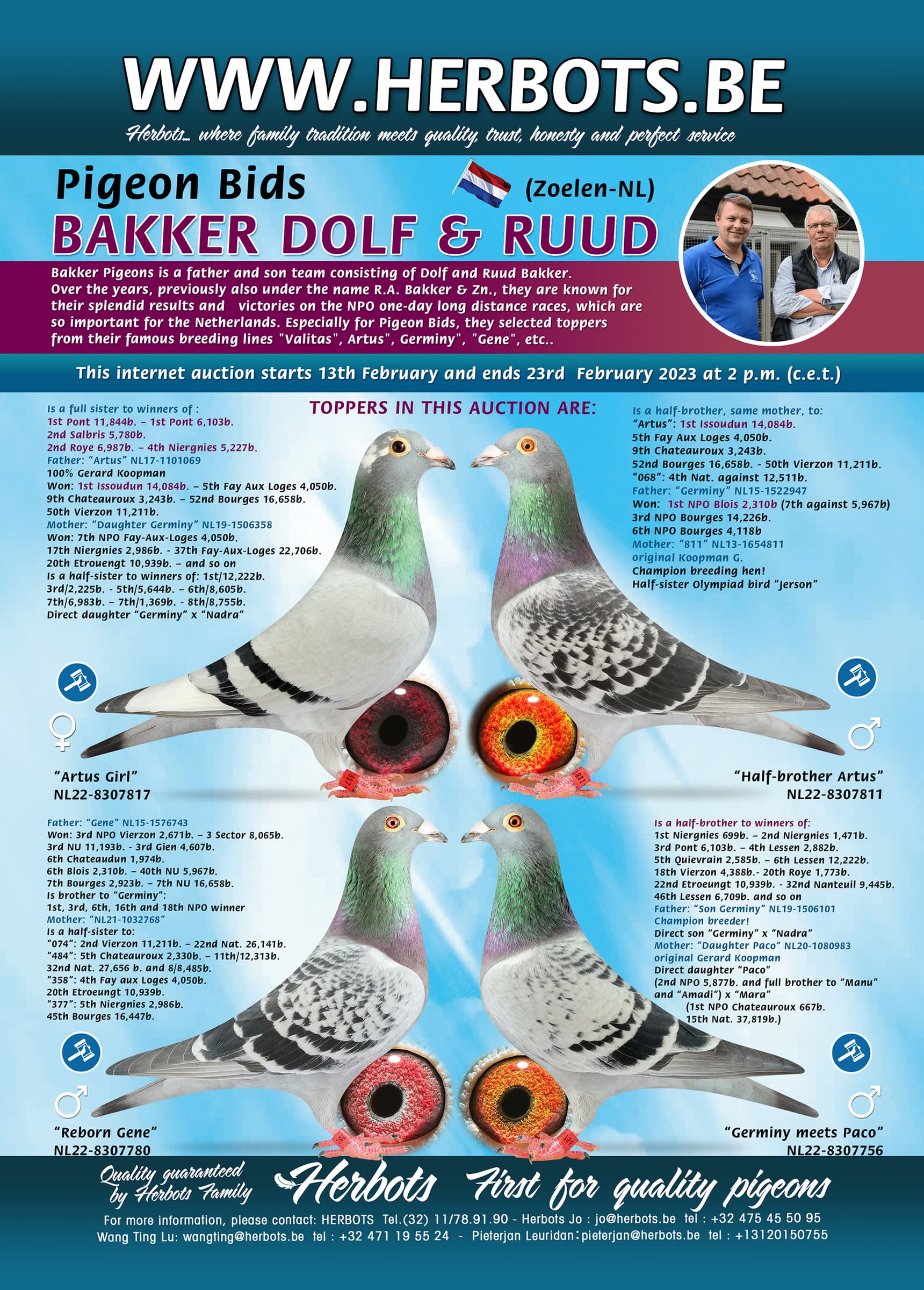 Dolf and Ruud offers at this moment a strong selected group of 2022-birds on internet auction Pigeon Bids.
