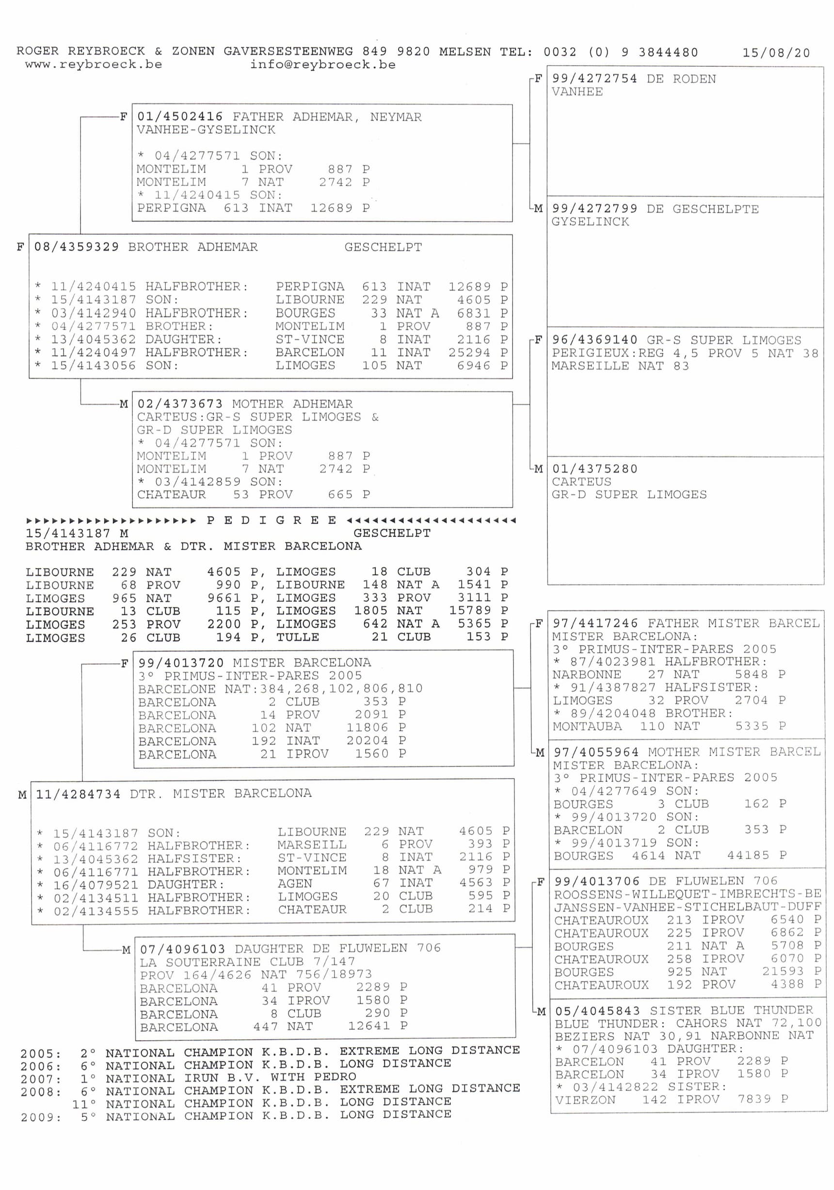 reybroeck & sons - melsen: 1st internat. narbonne 7,973 old birds - fastest of 21,394b.