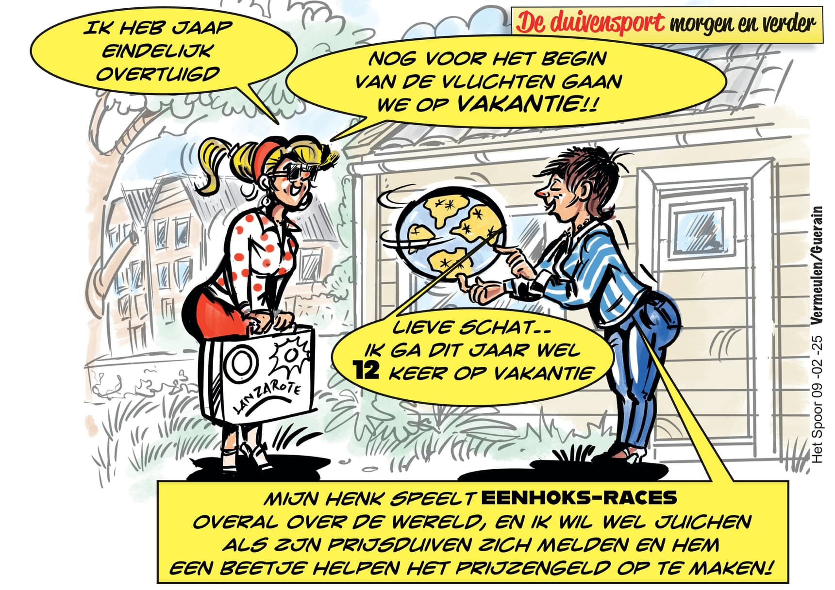 Dans de nombreux pigeonniers, les jeunes pour la saison à venir ont déjà été bagués chez les pigeons reproducteurs et les pigeons de course. Ils vont maintenant bien grandir grâce au temps hivernal plus sec de la semaine dernière. Entre-temps, nous attendons avec impatience les températures plus clémentes du printemps pour permettre à ces jeunes de s'envoler et nous pensons immédiatement à la foire de printemps à Houten.....