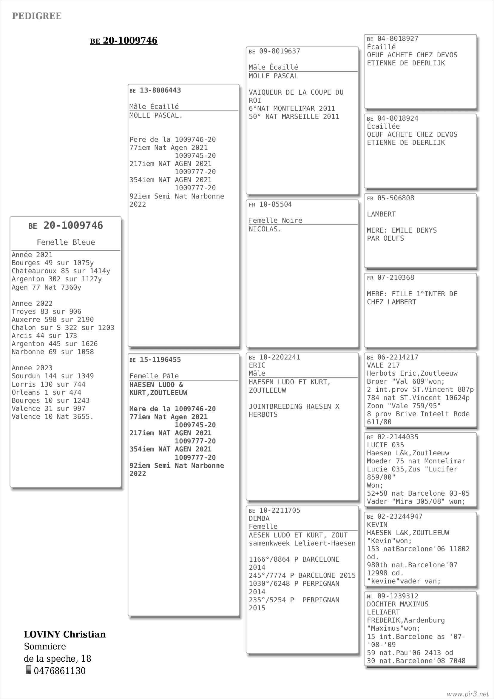 La BE 20-1009777 se classa également 9ième Nat Narbonne 2023. Une propre nièce, la BE 22-1013597 ratera la 30ième place nationale en fin de saison à cause d’un chip électronique défectueux..