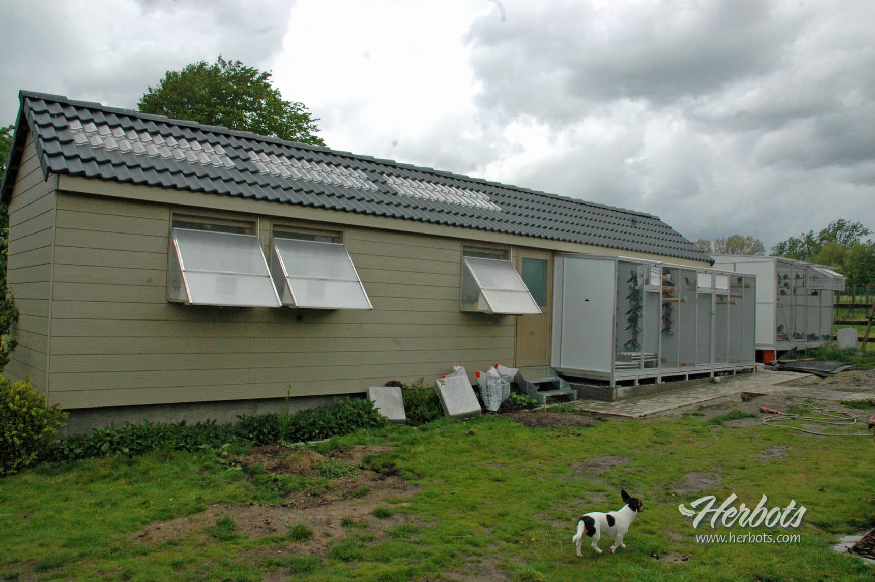 Les femelles résident pendant la semaine jour et nuit dans une volière (voir photo). Le côté ouvert est orienté sud-est. C'est là aussi qu'elles ont été obscurcies de la mi-février à la fin avril.