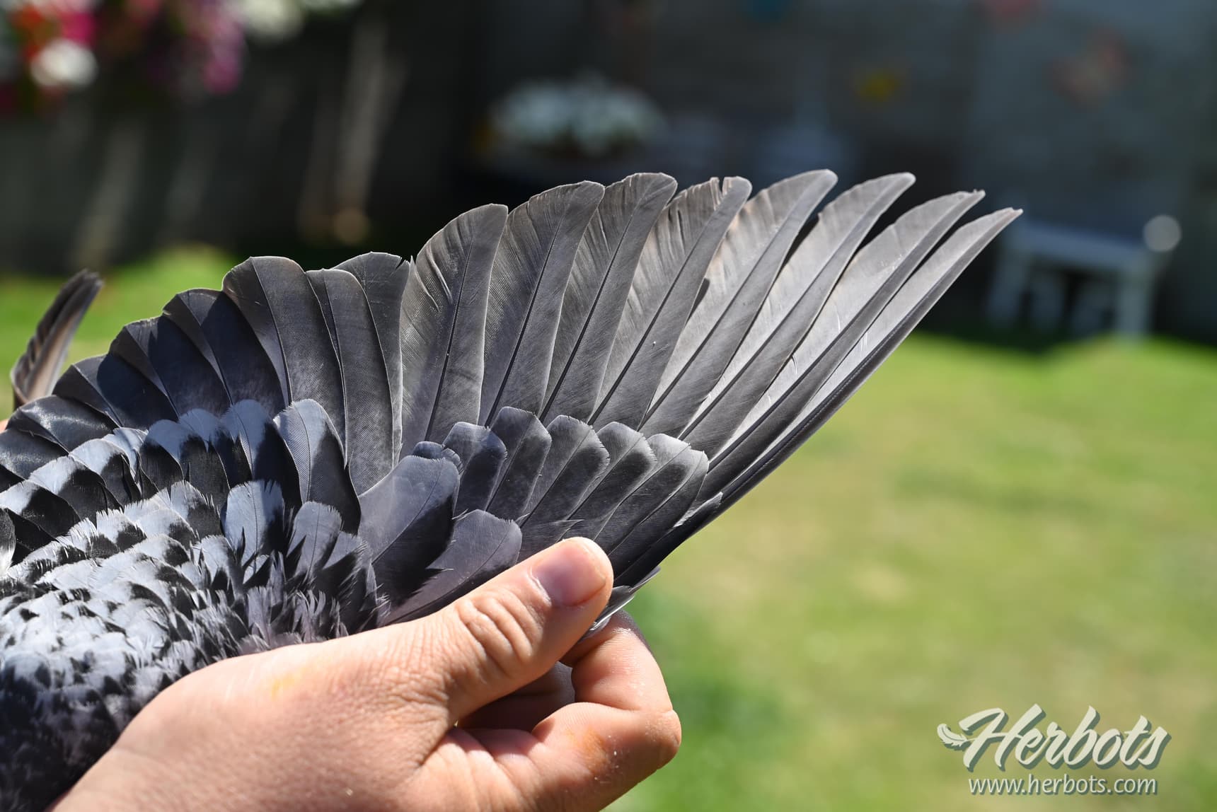 "Papa's Vriend" est un pigeon magnifiquement construit, de type moyen, au dos ferme et la fourche bien fermé. Voir les photos d'accompagnement