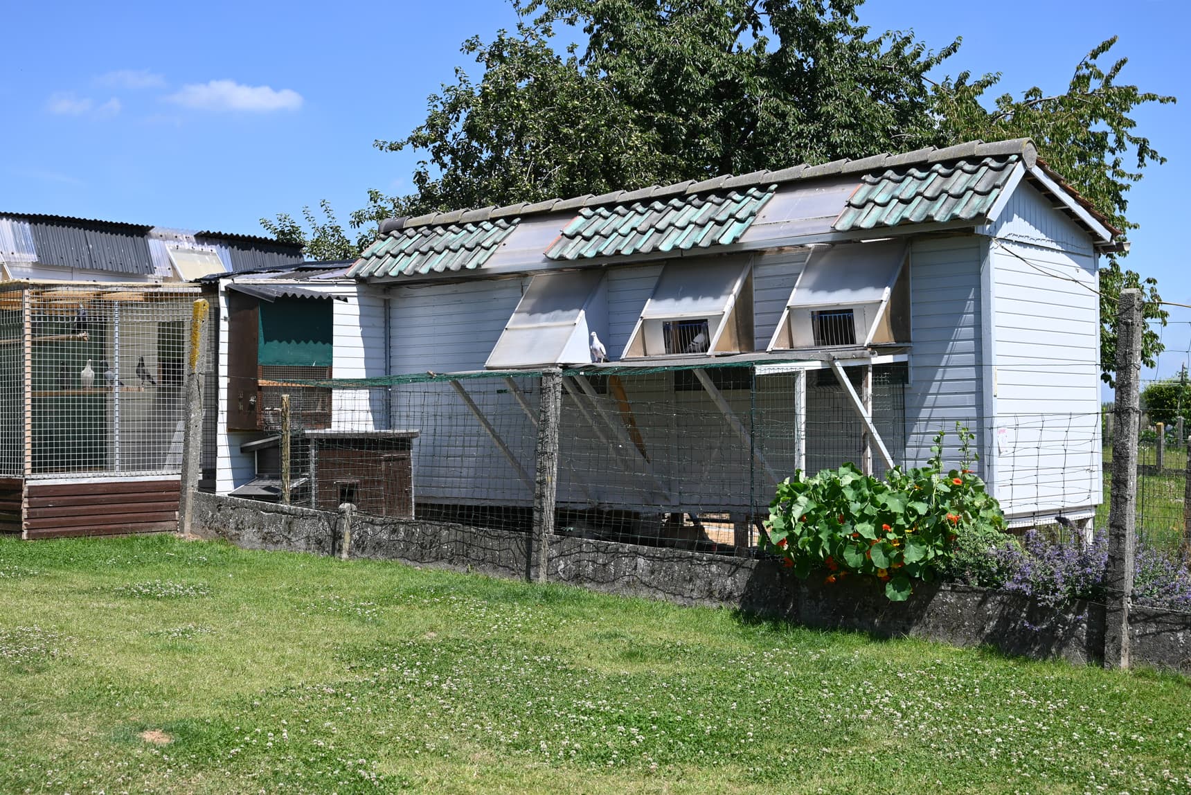 La famille Wauters aime les animaux... c'est évident quand on entre dans leur maison. Un bouvreuil siffle sa chanson dans sa cage typique sur la table de la cuisine, tandis qu'un rougequeue gris me regarde d'un air légèrement menaçant. Sans oublier un grand chien qui, selon le mari de Nadine, est un chiot, les nombreux oiseaux chanteurs à l'extérieur dans la volière et les poules sous le pigeonnier. En plus de tout cela, ils ont aussi une belle installation de pigeonnier car la colombophilie est dans leurs veines. Non seulement Nadine et son mari, mais aussi les enfants et même les petits-enfants sont "fous de pigeons".