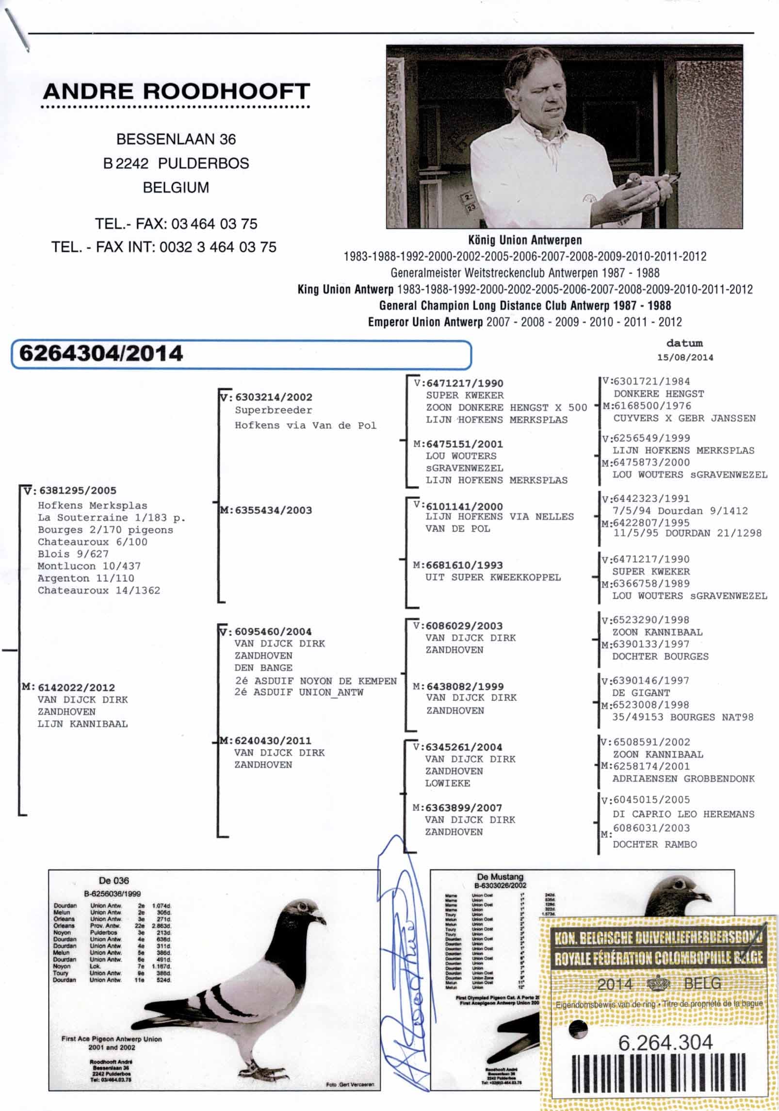 Éleveur : ROODHOOFT ANDRE 安德烈·鲁道夫