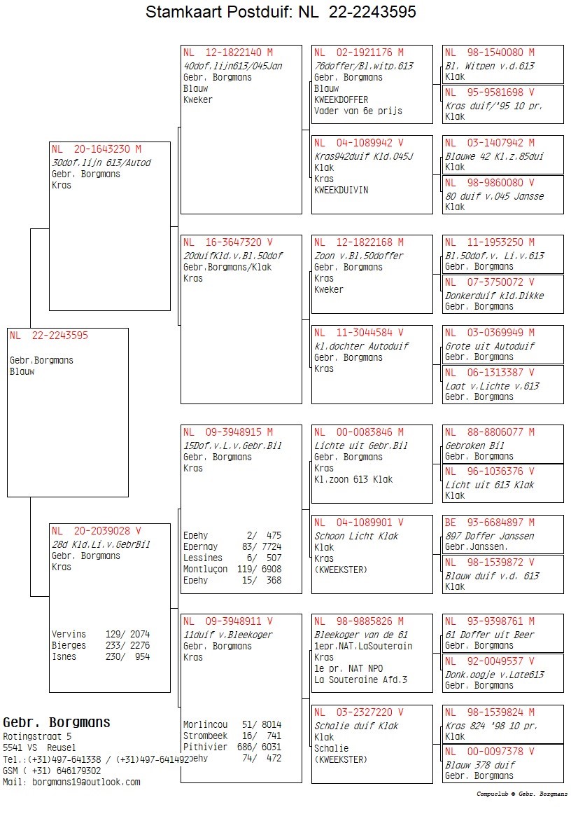 Born out “NL09-3948915” x “11-duifje van Bleekoger”