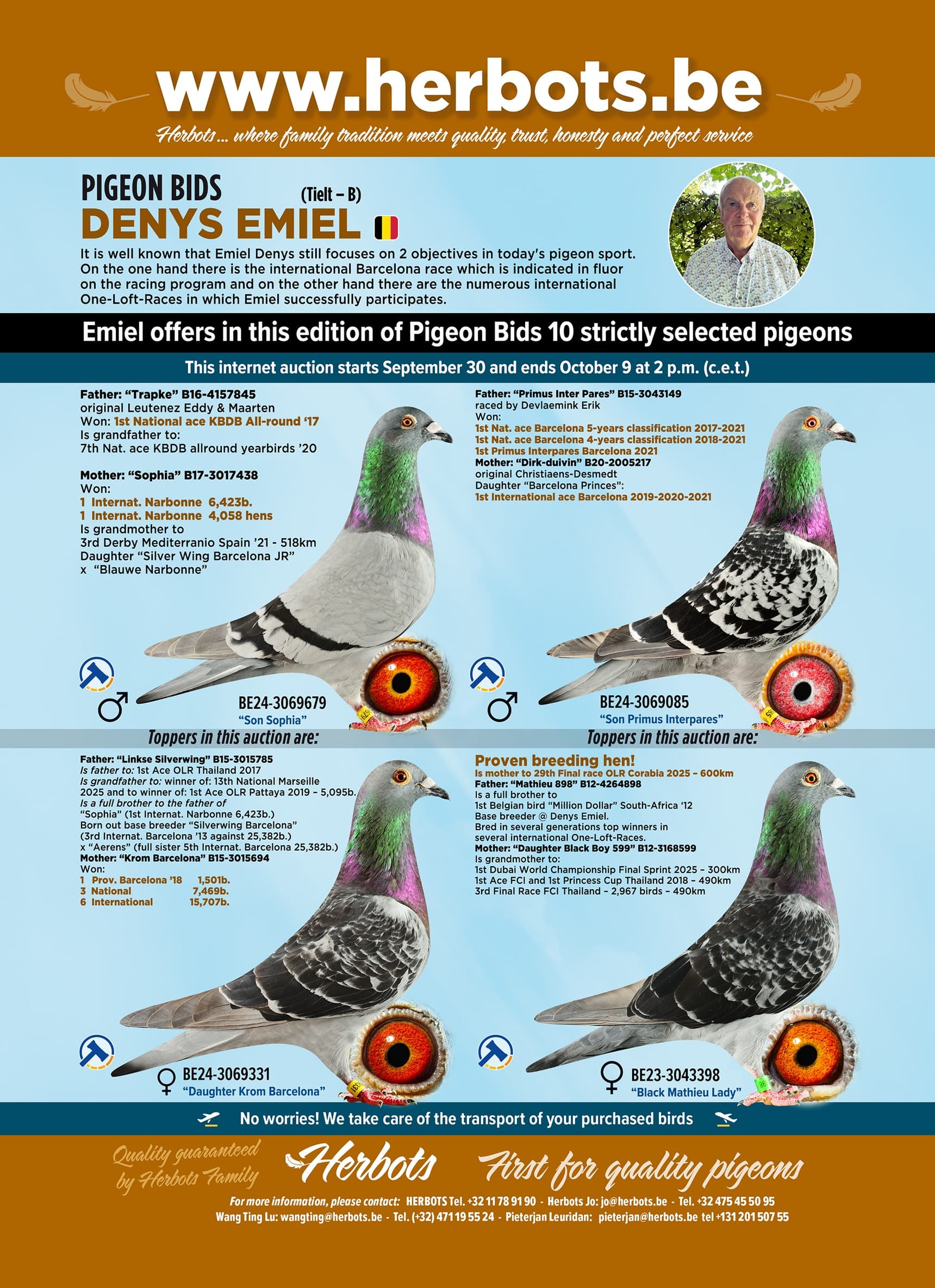 Emiel offers in this edition of Pigeon Bids 10 strictly selected pigeons.