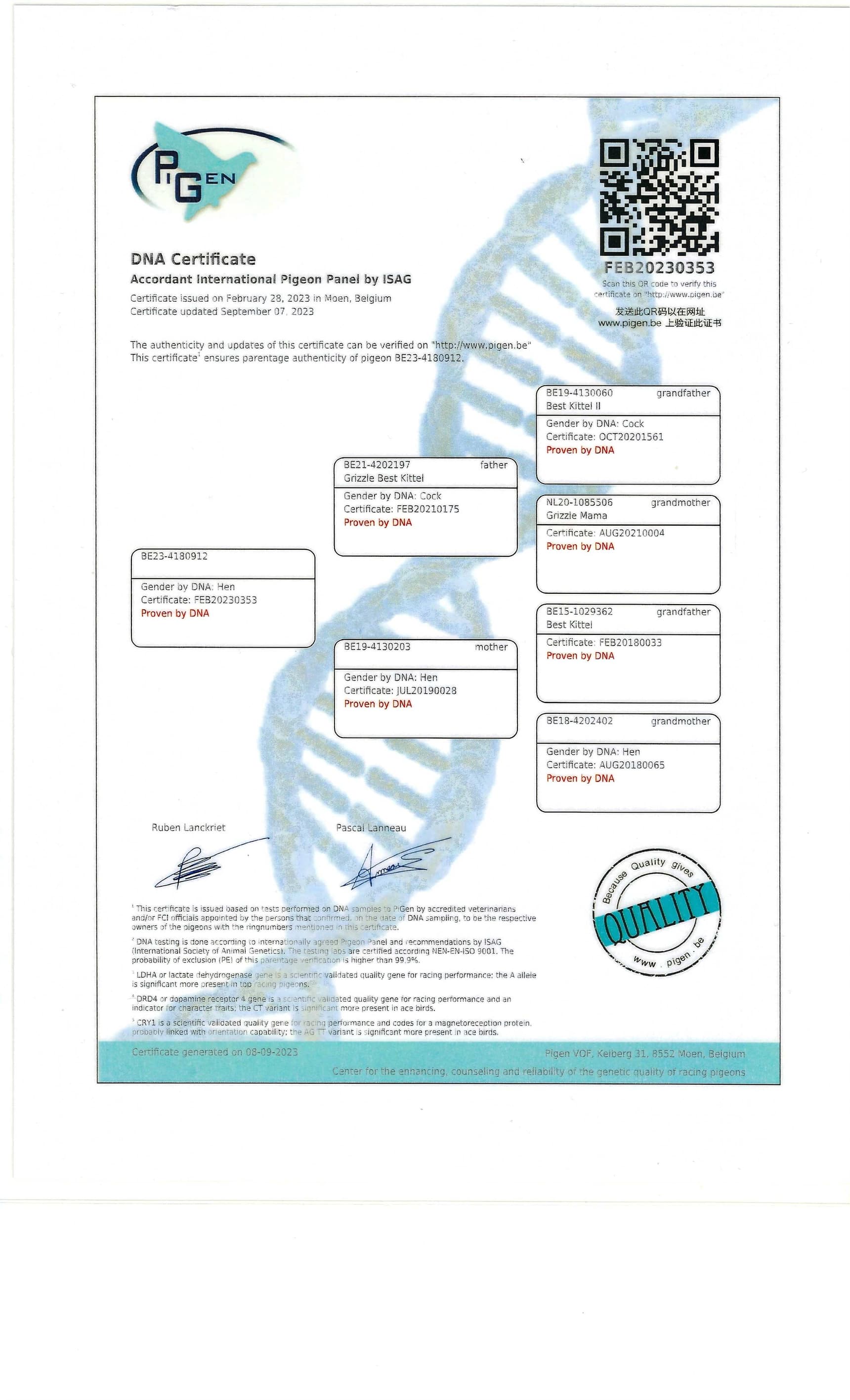 (daughter “Ace 820” x “Goed Grijs” – Leideman)