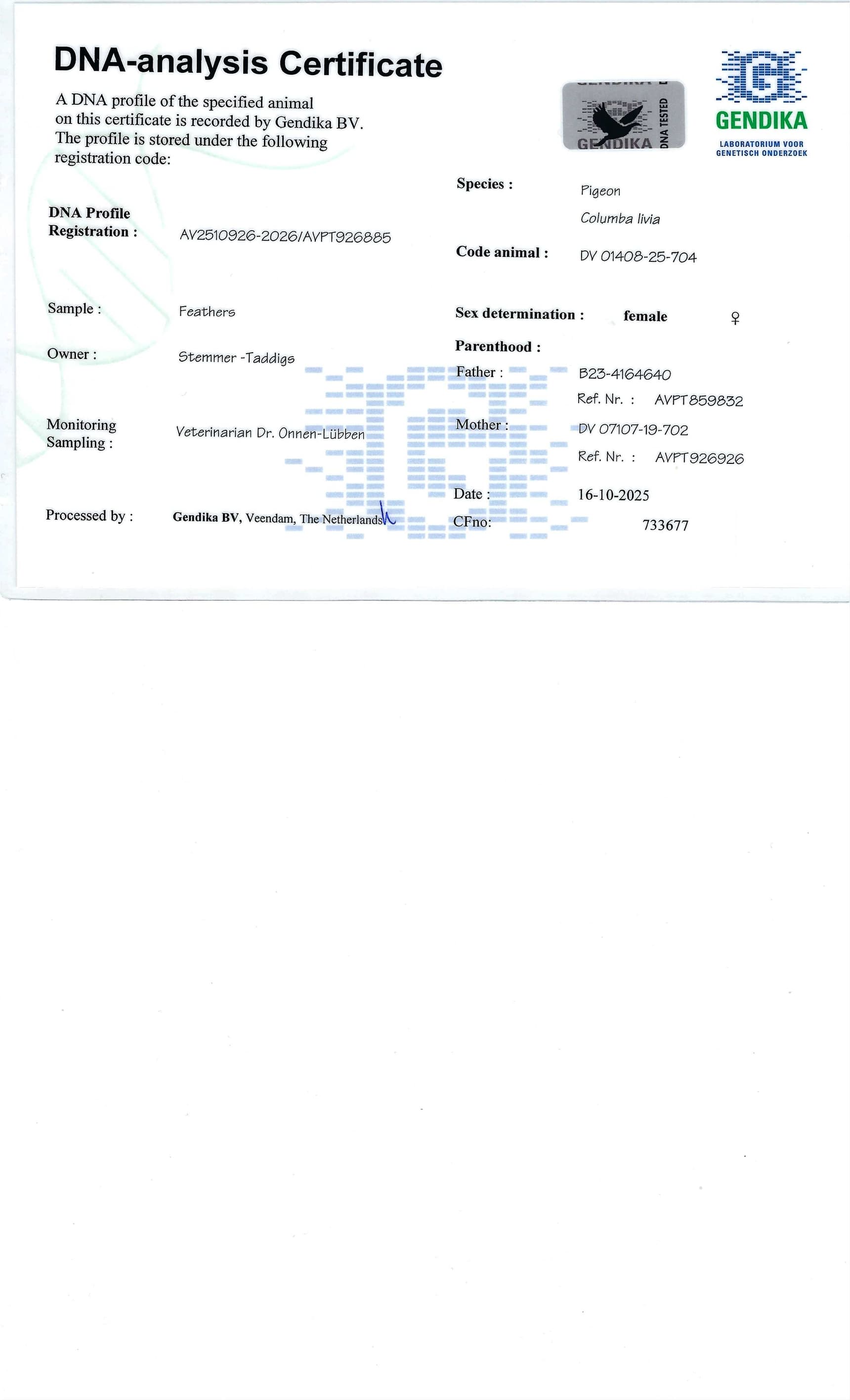 “Daughter Blue Gala 085” B17-4062085 won: