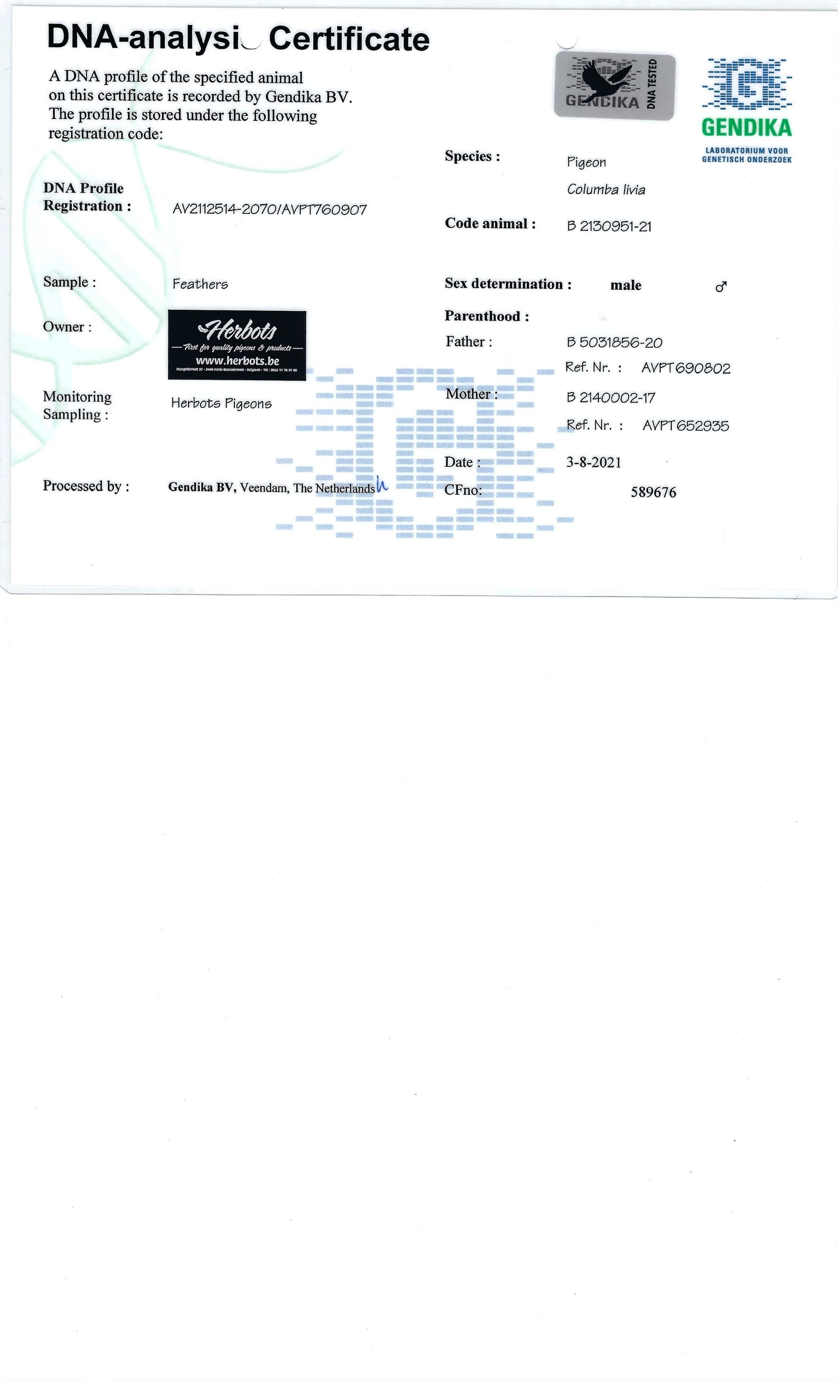 1st Nat. Olympic Ace pigeon Y.B. Cat. F 2020