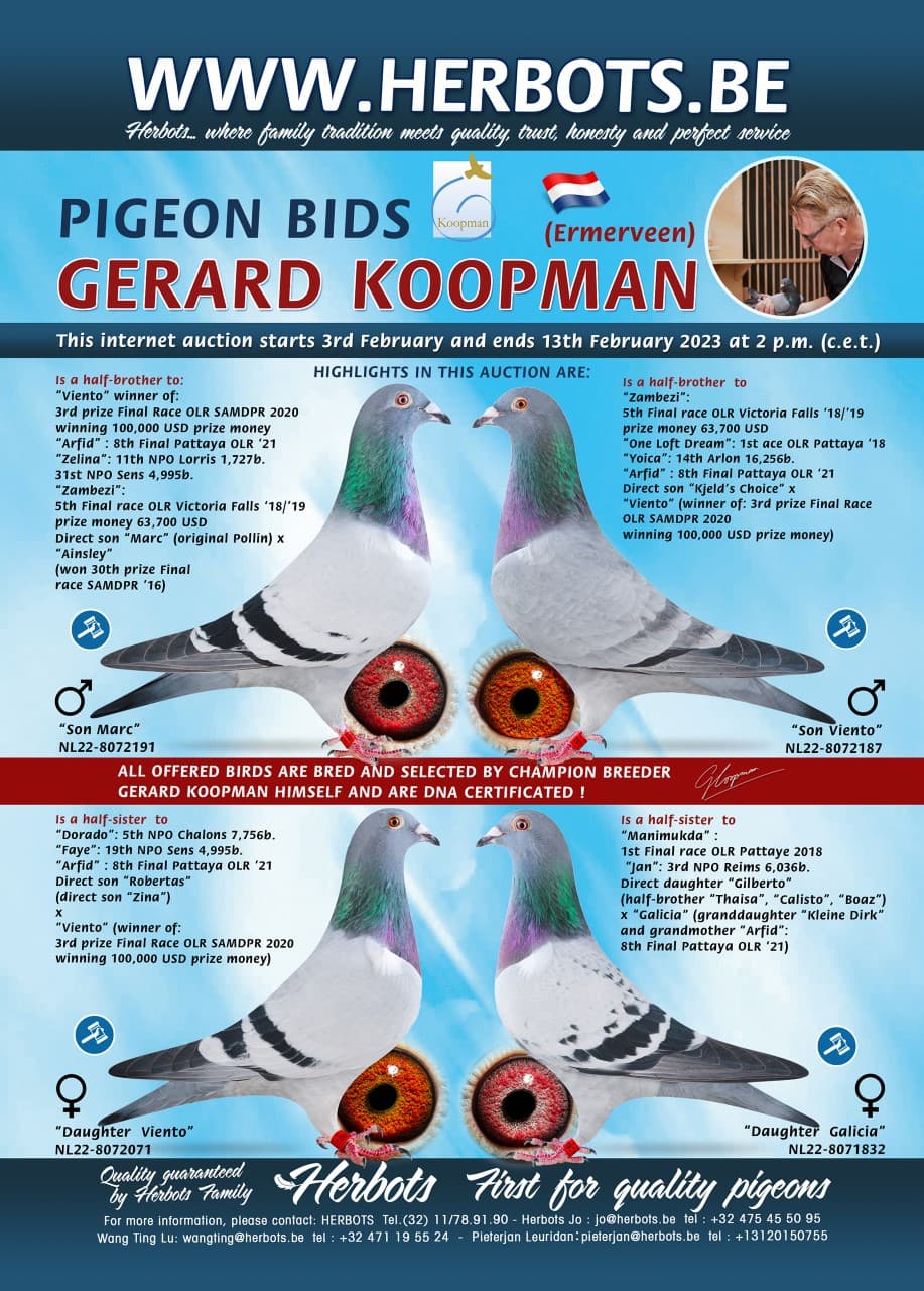 In this auction offers world-champion Gerard Koopman 11 well selected birds all bred out his famous OLR winning toppers!