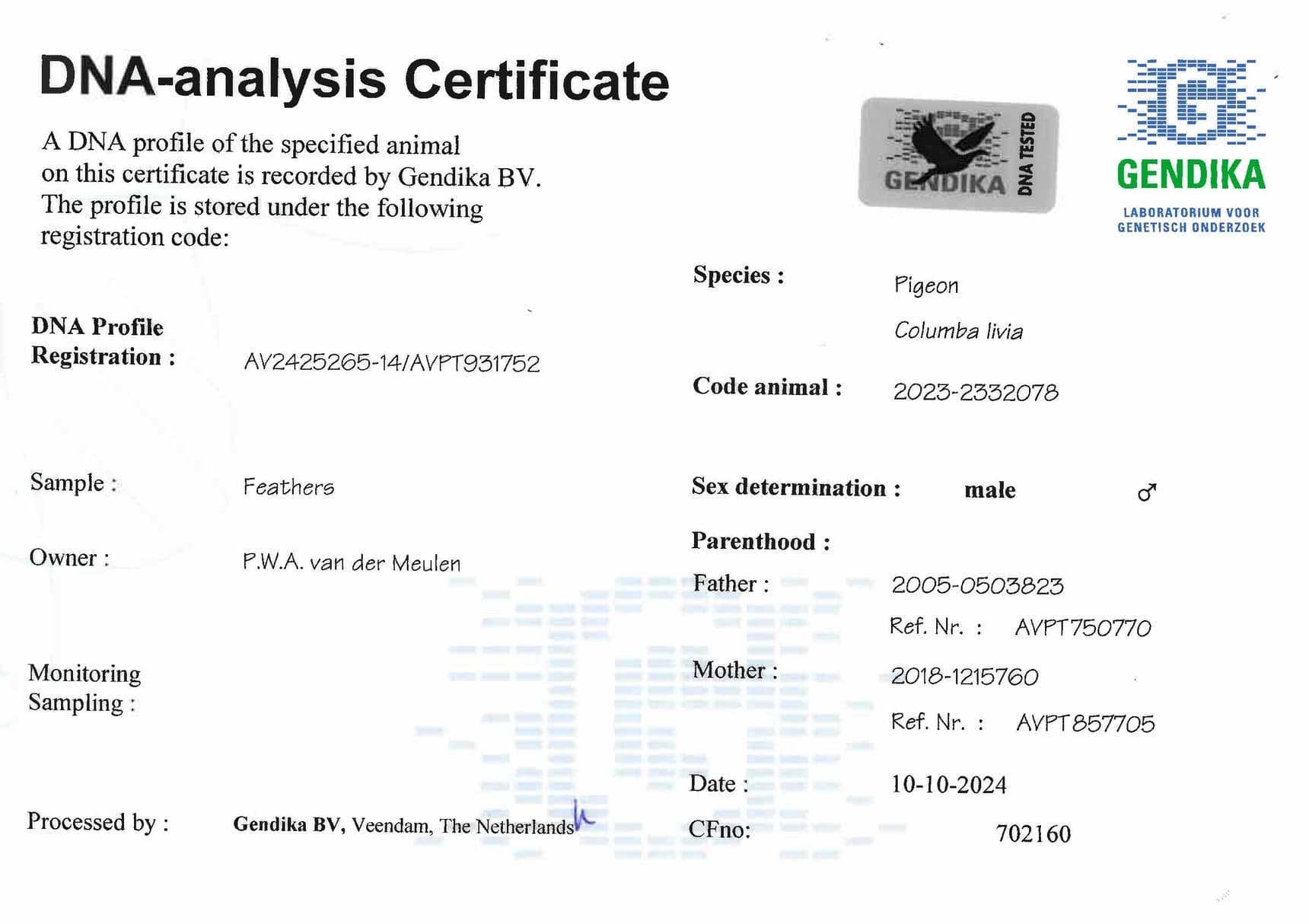 Éleveur : VAN DER MEULEN WALTER 瓦特·范德穆伦