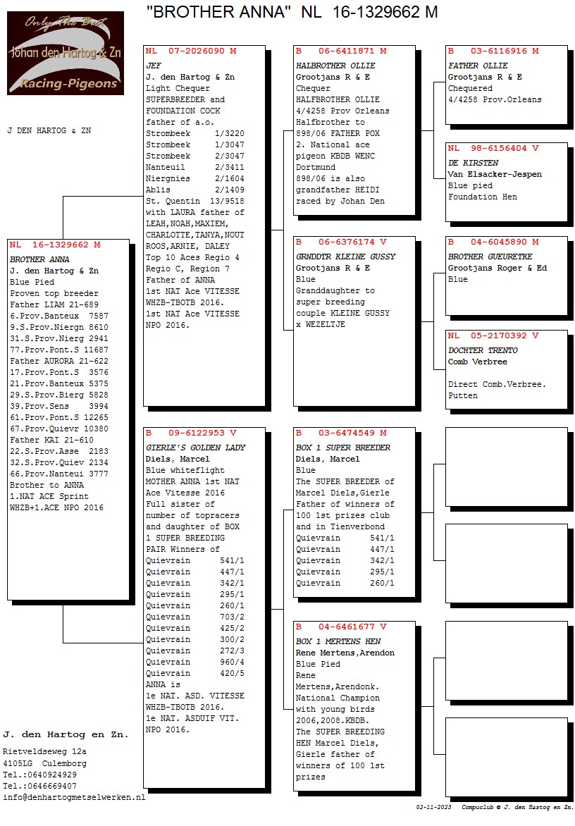 Éleveur : J. den Hartog & Zn 德哈托格父子