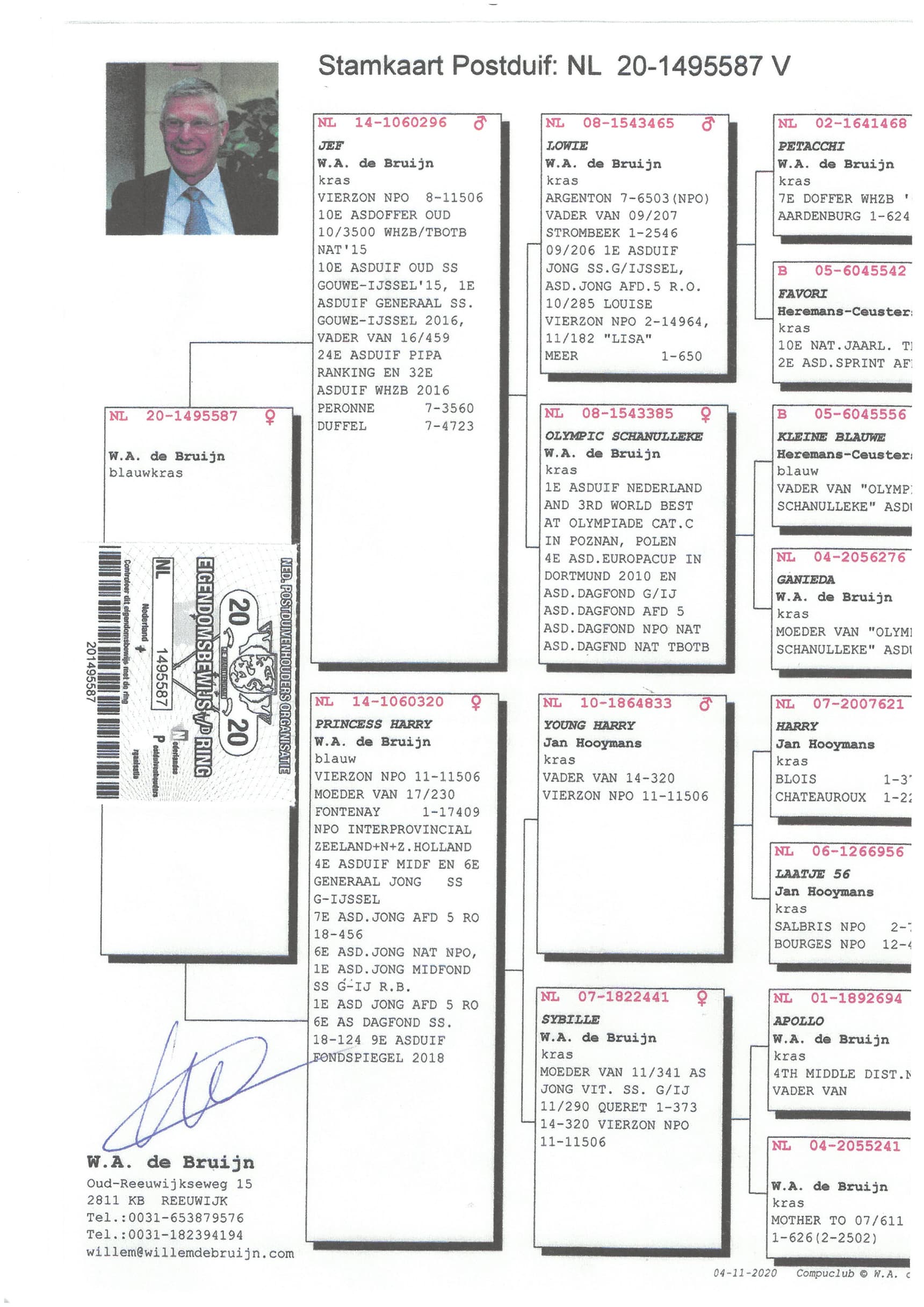 Éleveur : 100% WILLEM DE BRUIJN 纯威廉迪布恩血统