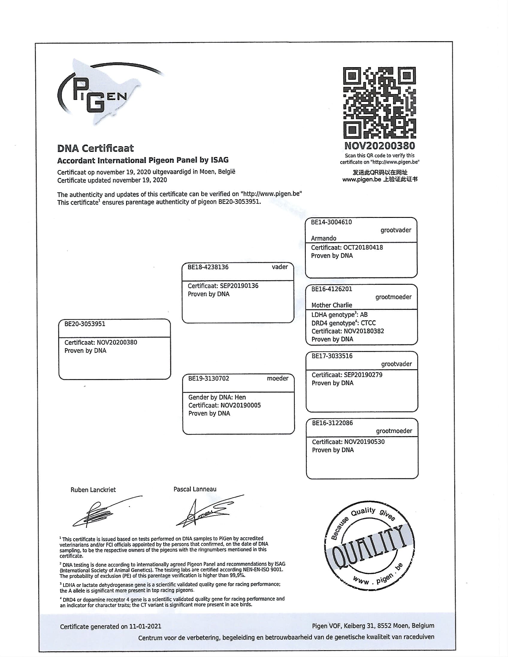 Father: “Sire Armando” B18-4238136 – original Verschoot J.
