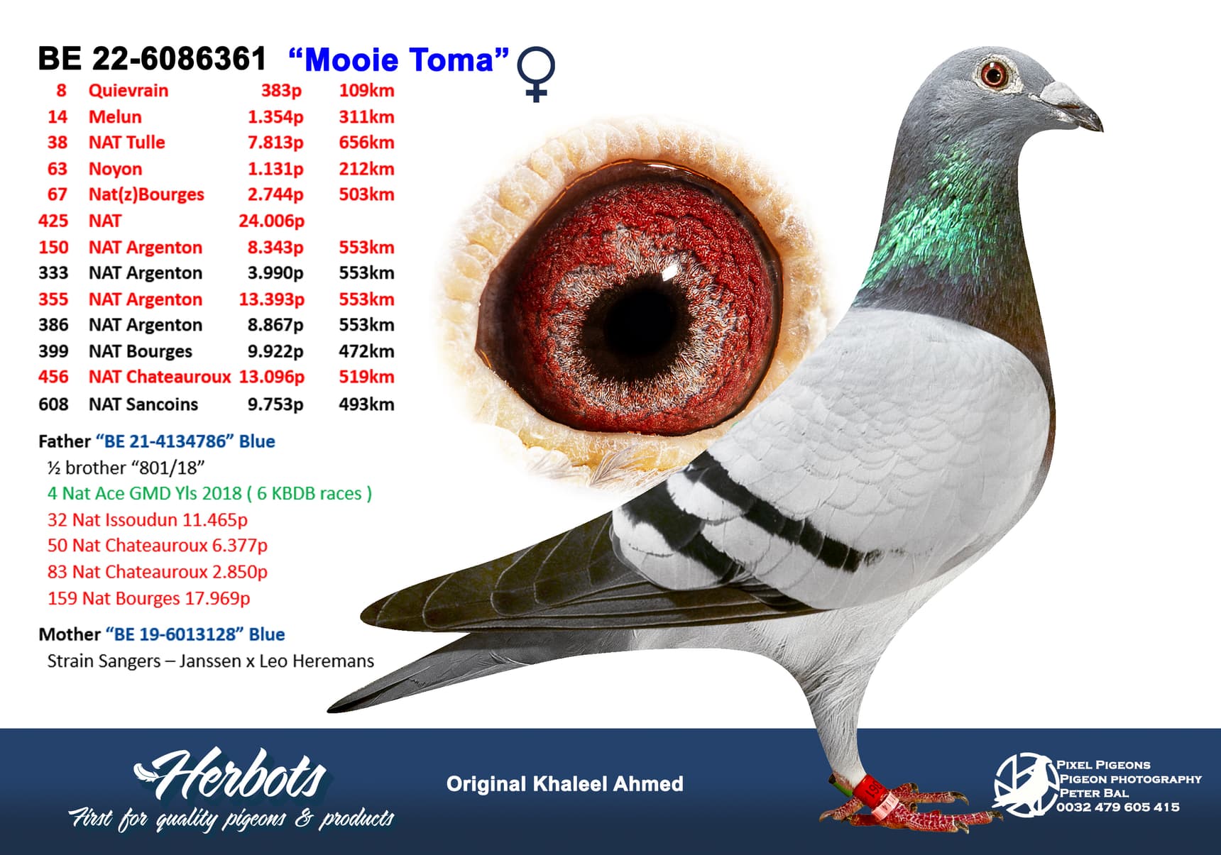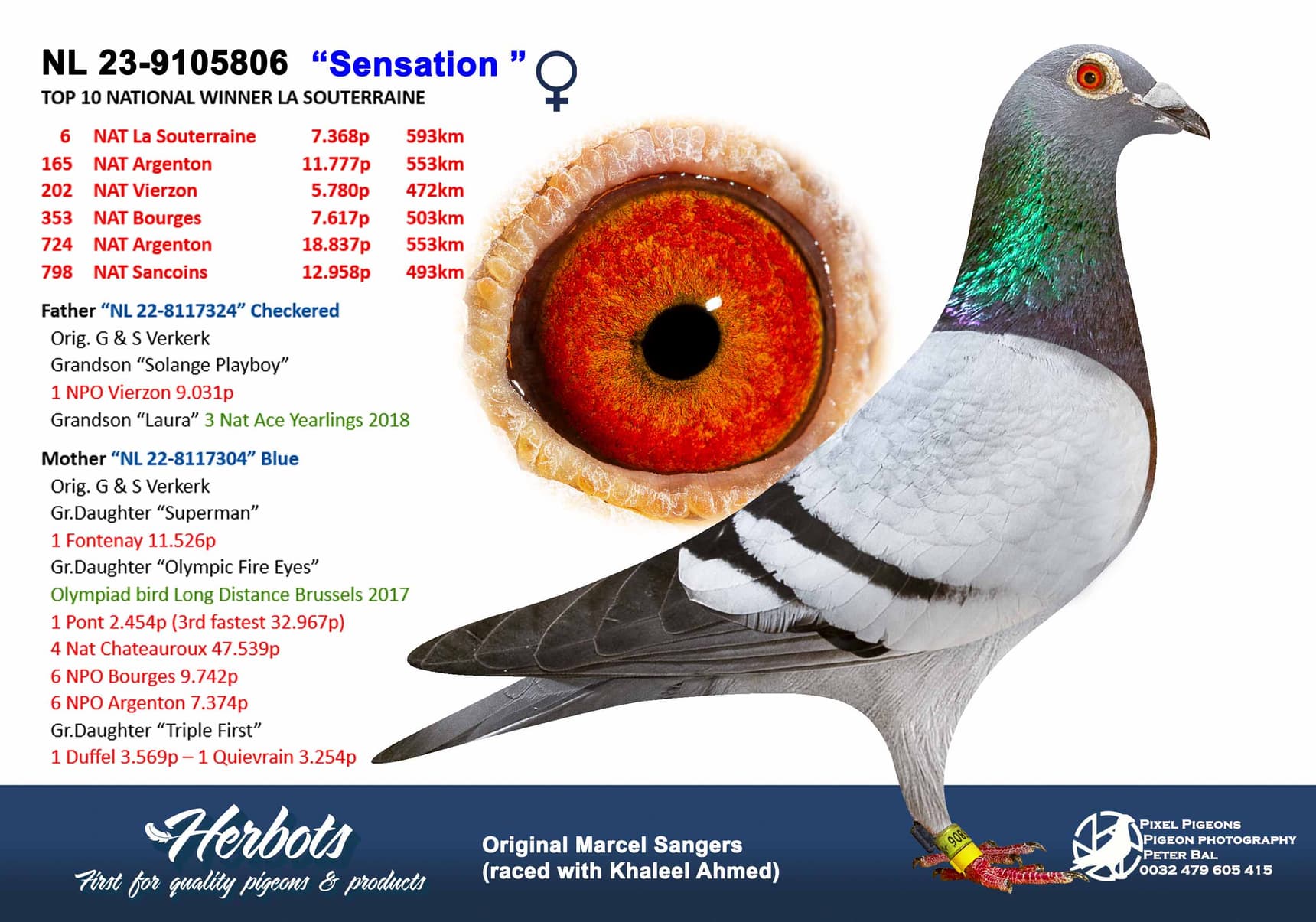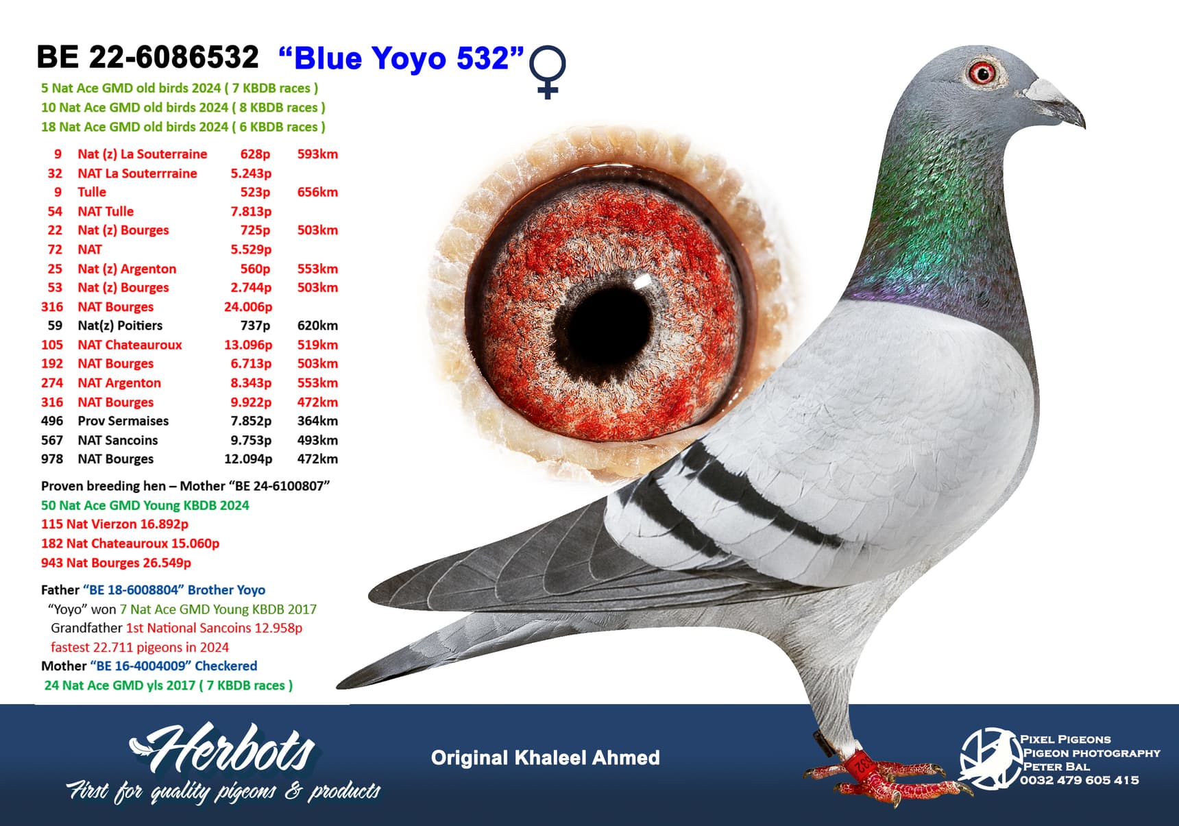 Dans cette vente internet nous vous proposons les meilleurs voyageurs vieux et yearlings de la colonie Ahmed Khaleel. Sa lignée est basée sur le « Yoyo » 7 As Pigeon Nat grand demi-fond pigeonneaux RFCB 2017 et il est devenu grand-père du 1er National Sancoins 12.958p en 2024 (le plus rapide de 22.711p). « Yoyo » est un croisement entre les lignes de « Goudhaantje » Rudi Diels et « Black Jack » et « Kannibolleke » Paul Huls. Plusieurs de ses frères et sœurs sont les pères des meilleurs voyageurs de cette vente.