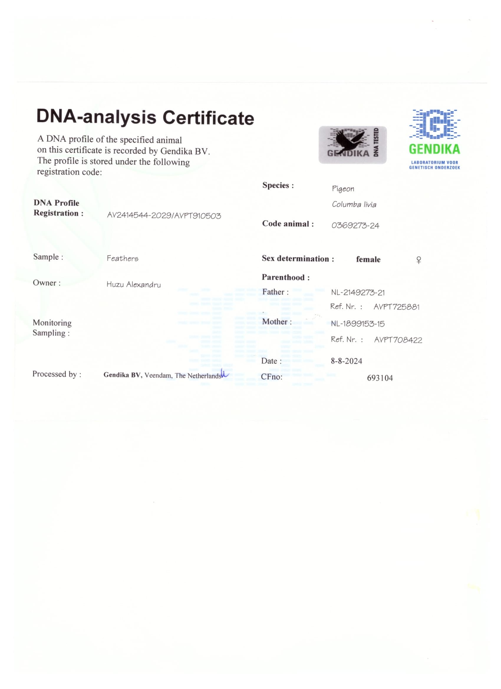 Mother: “Daughter Perpignanduivin” NL15-1899153