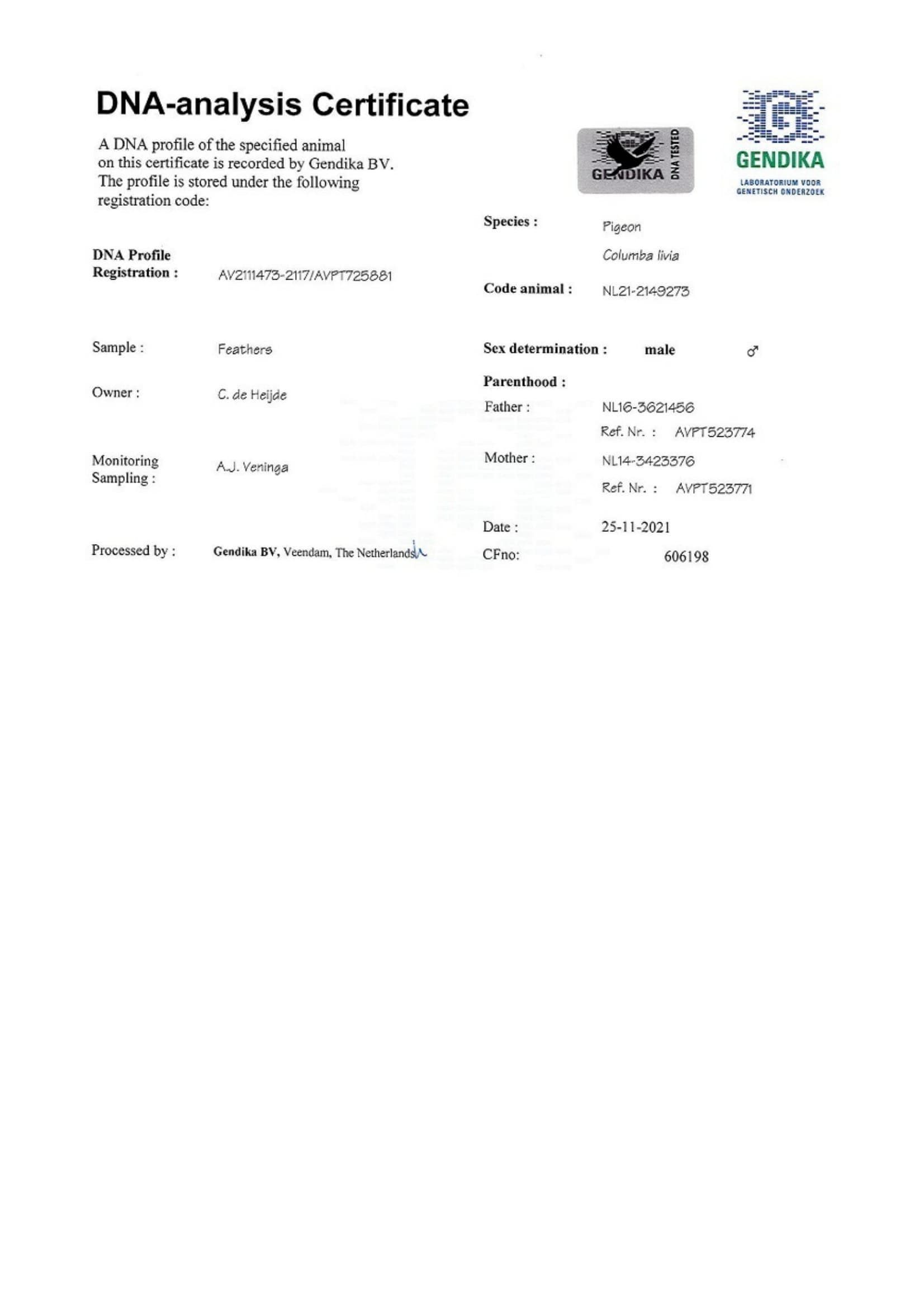 Father: “Son Diamantje” NL21-2149273