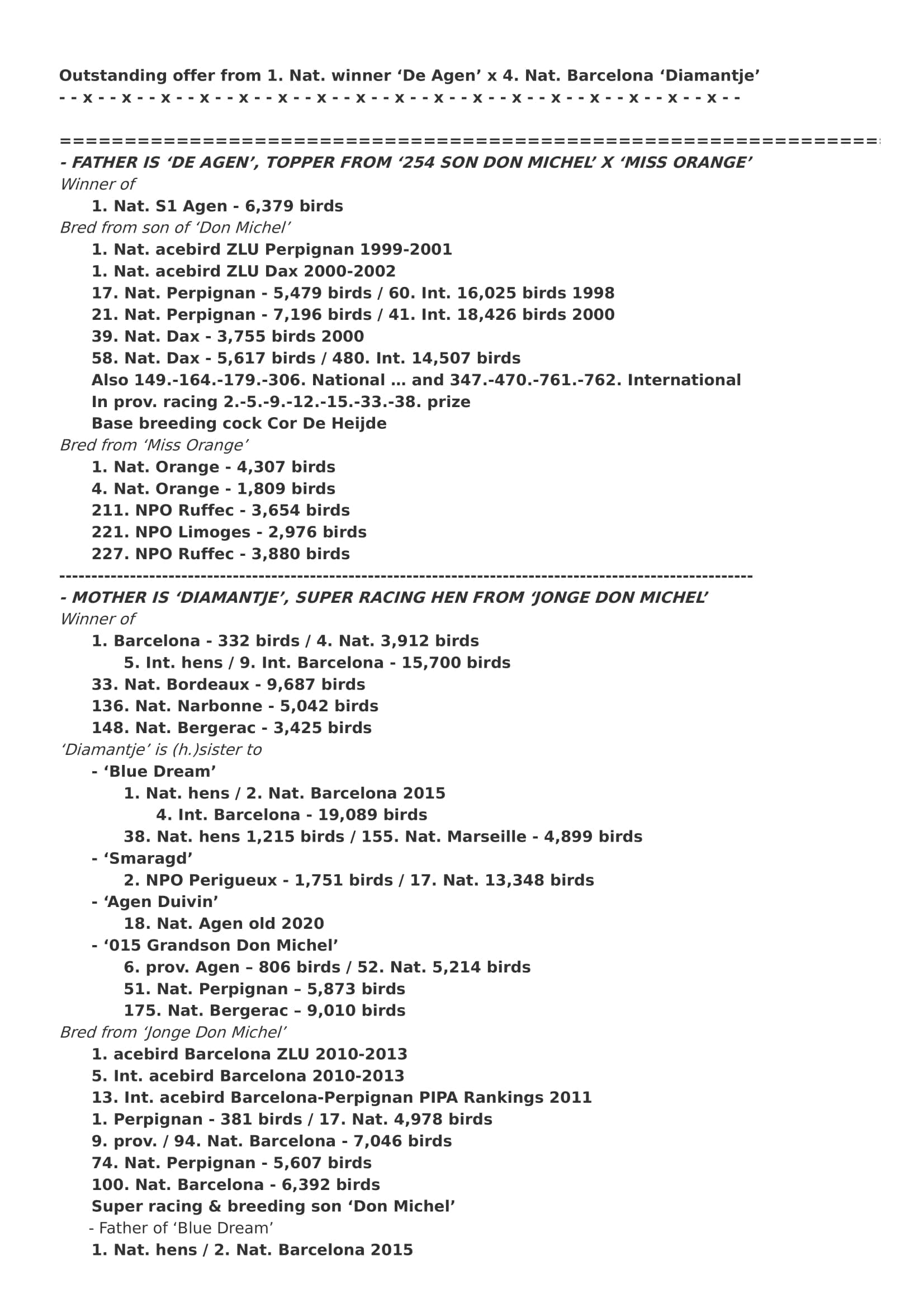 Direct son born out “De Agen” x “Diamantje”