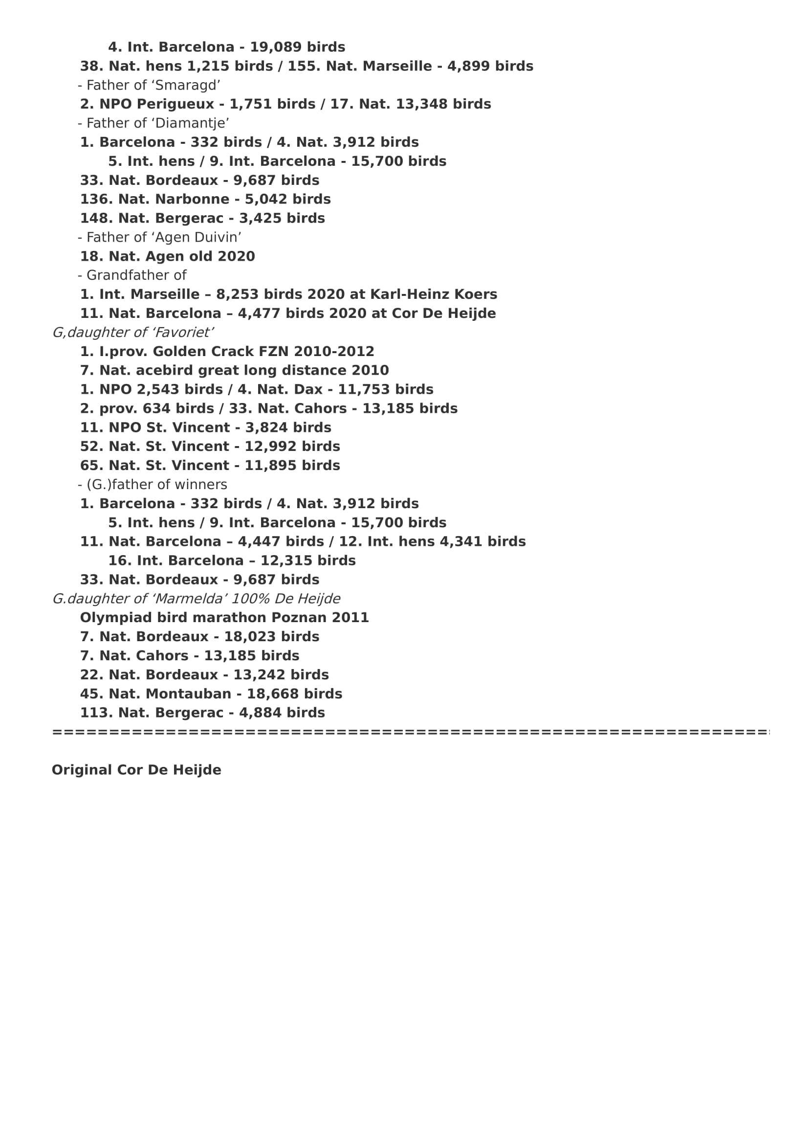 Born out 2 original Cor de Heijde birds