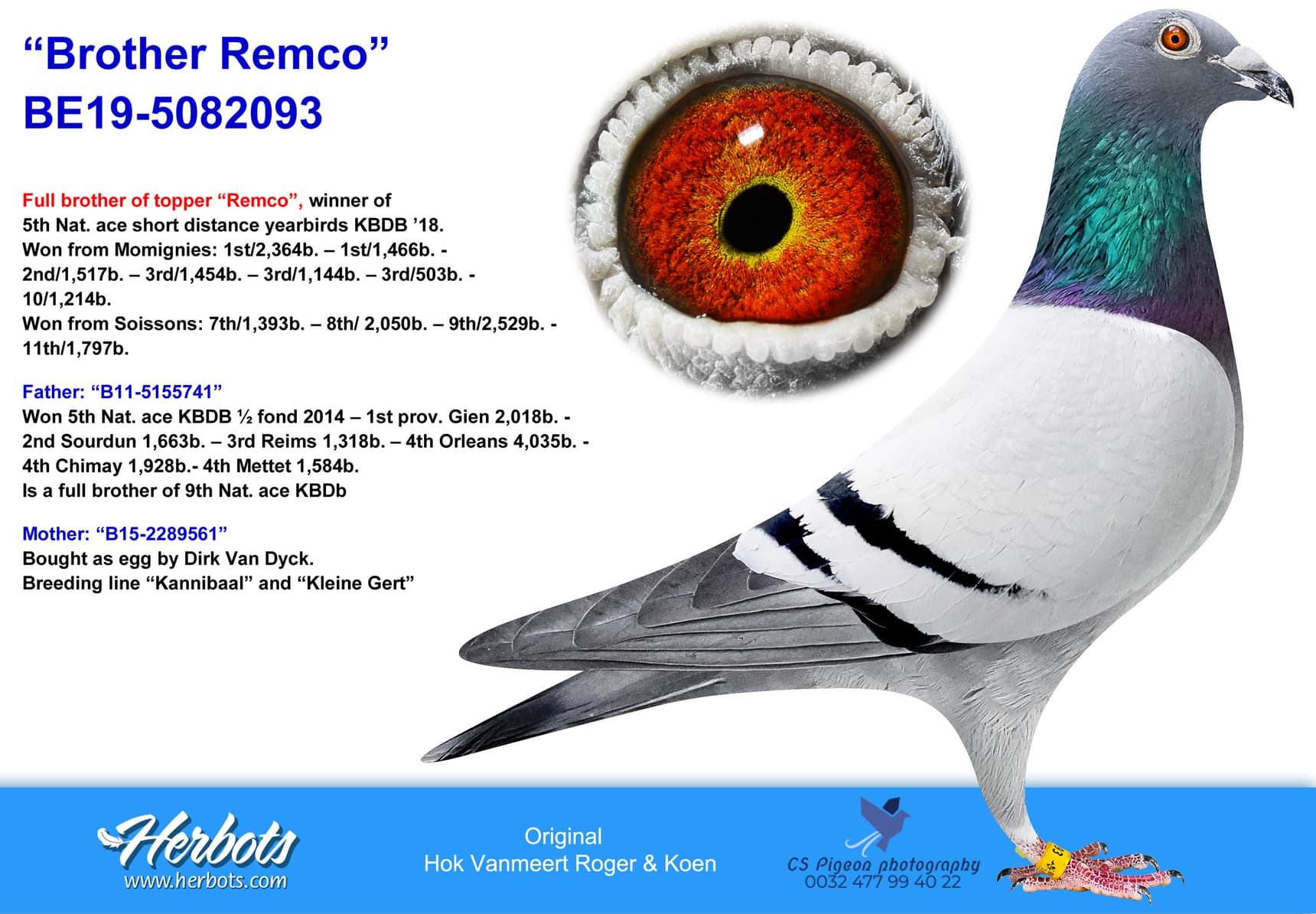 Won 12 prizes as young bird – 8 x 1/10