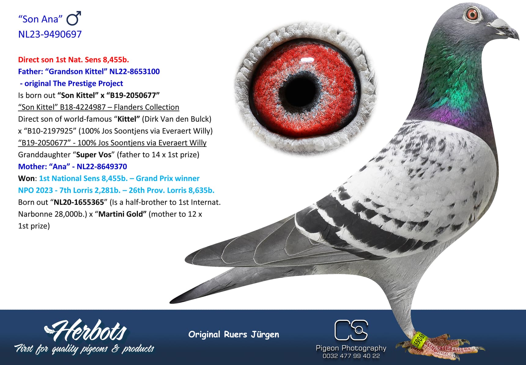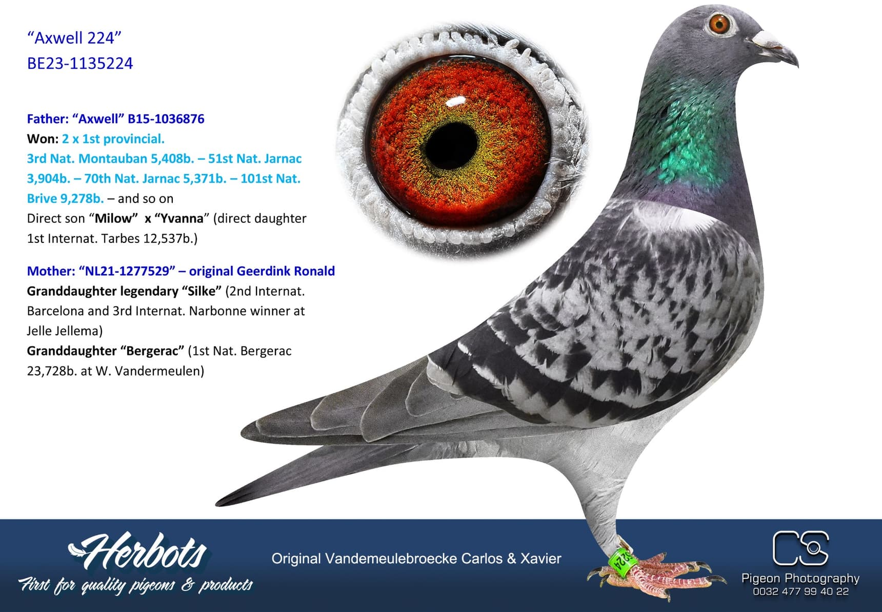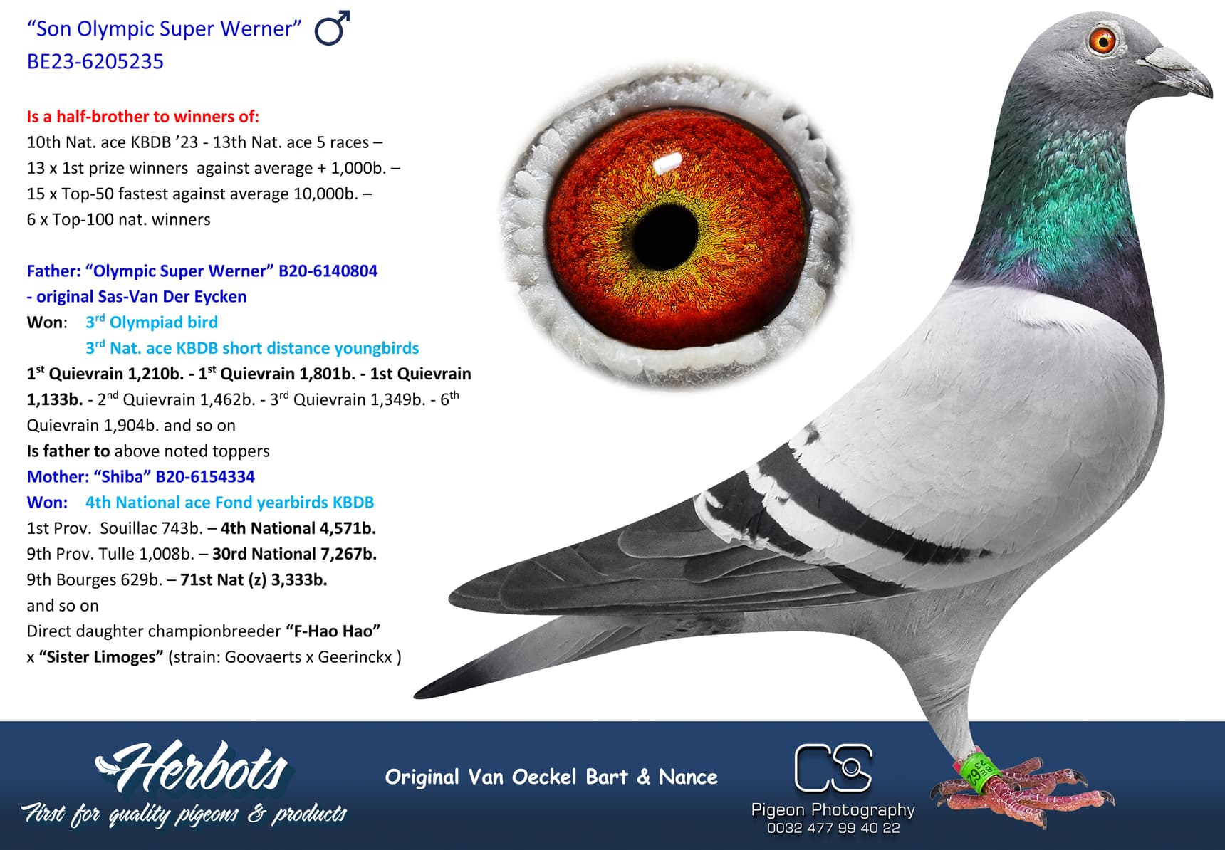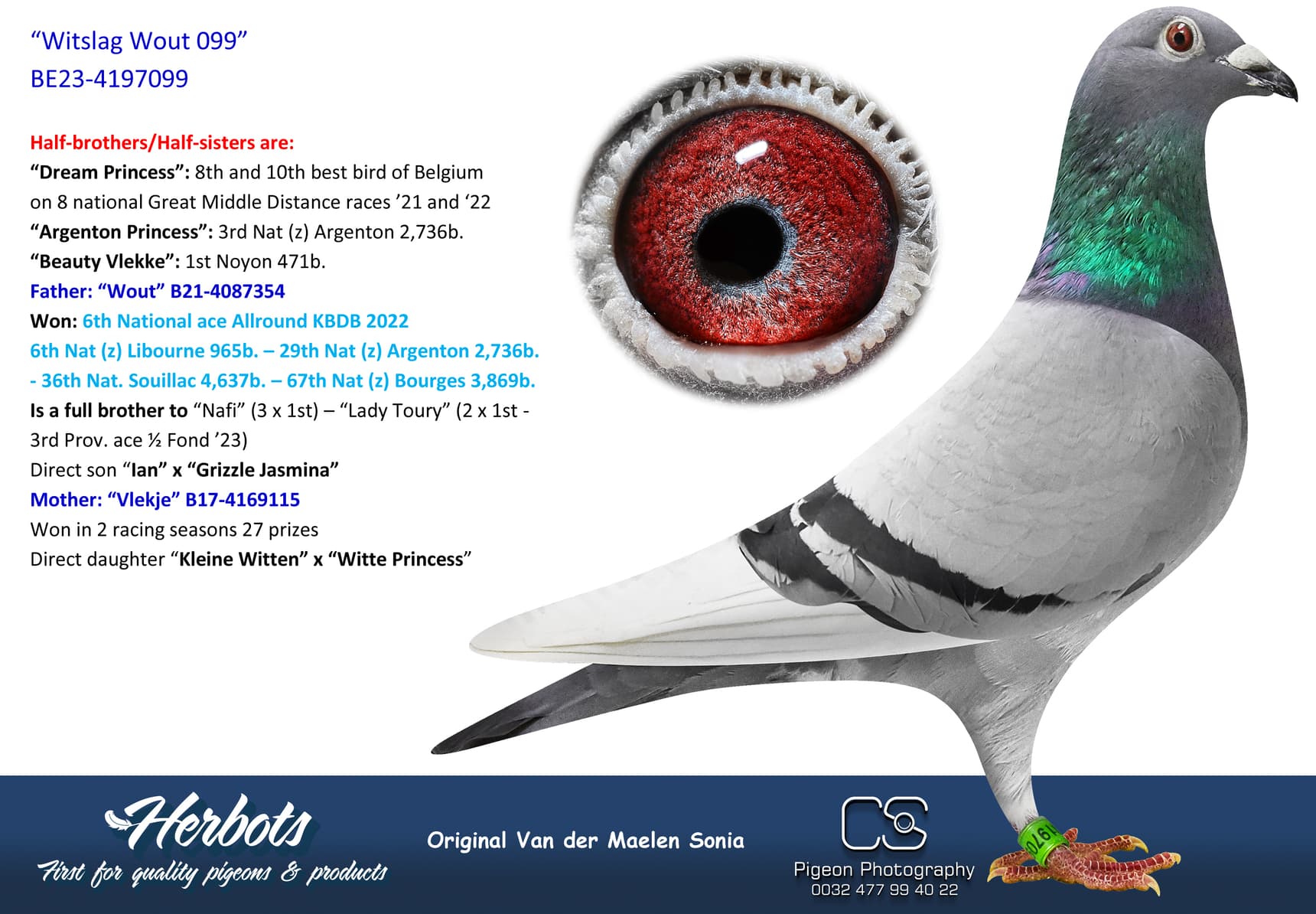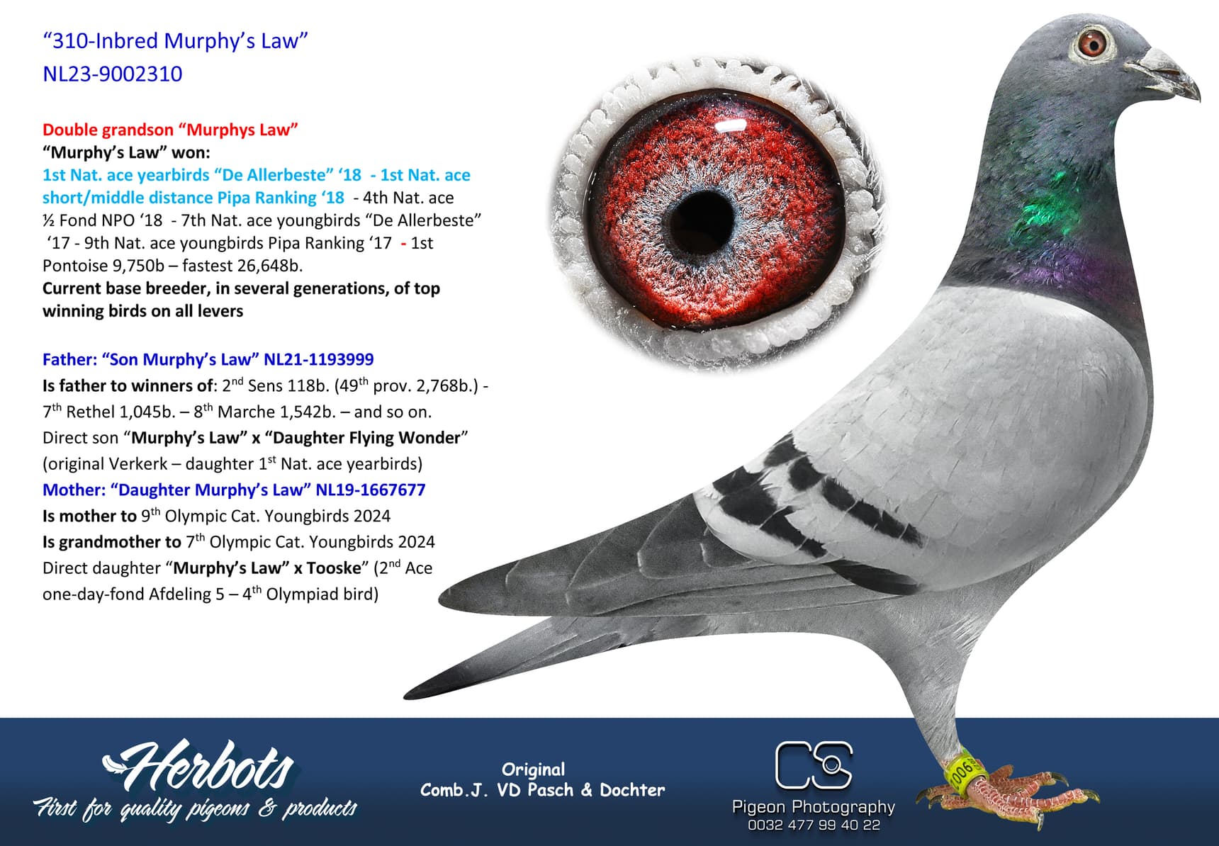 Direct daughter “Murphy’s Law” x Tooske” (2nd Ace one-day-fond Afdeling 5 – 4th Olympiad bird)