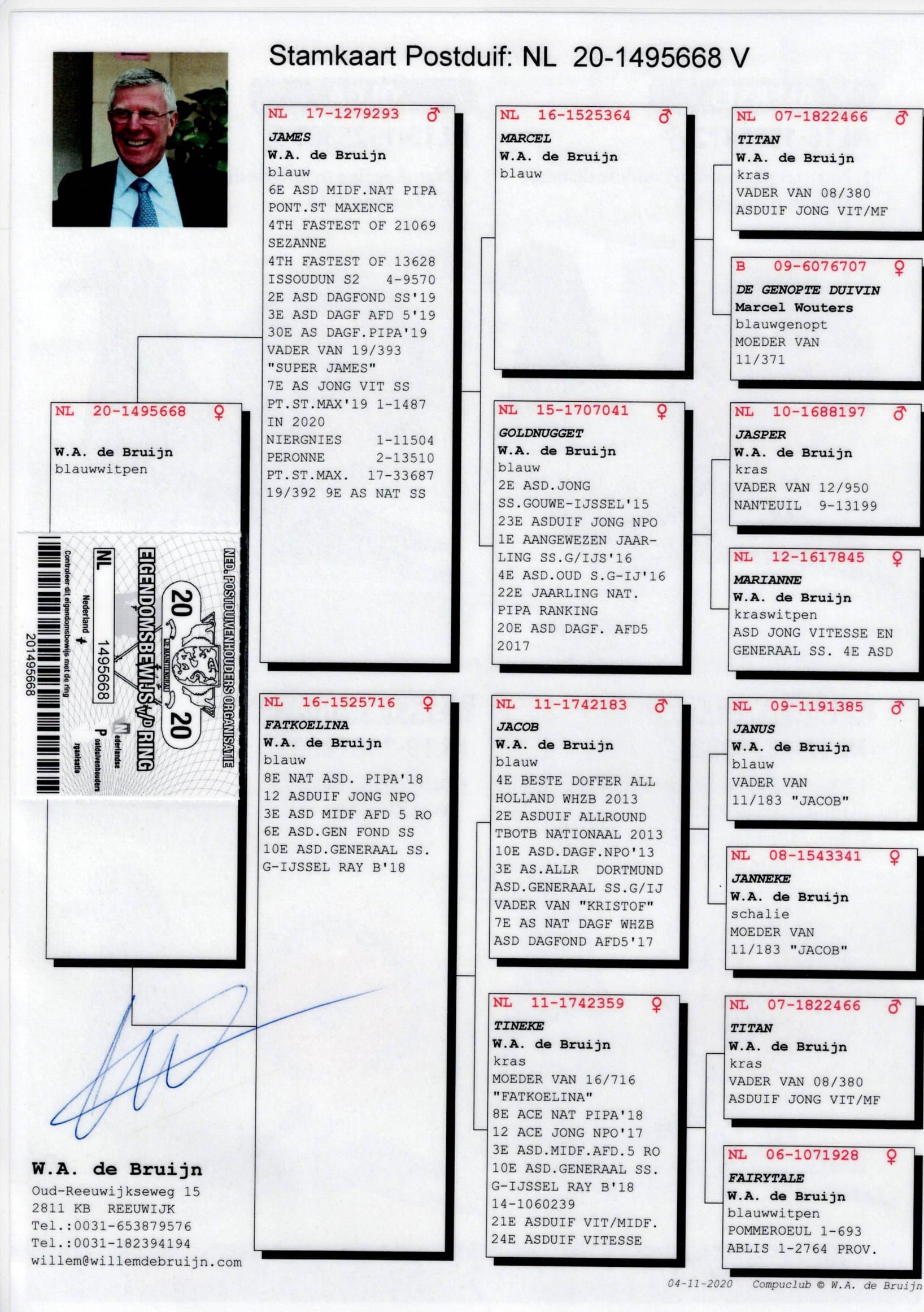 Éleveur : 100% WILLEM DE BRUIJN 纯威廉迪布恩血统