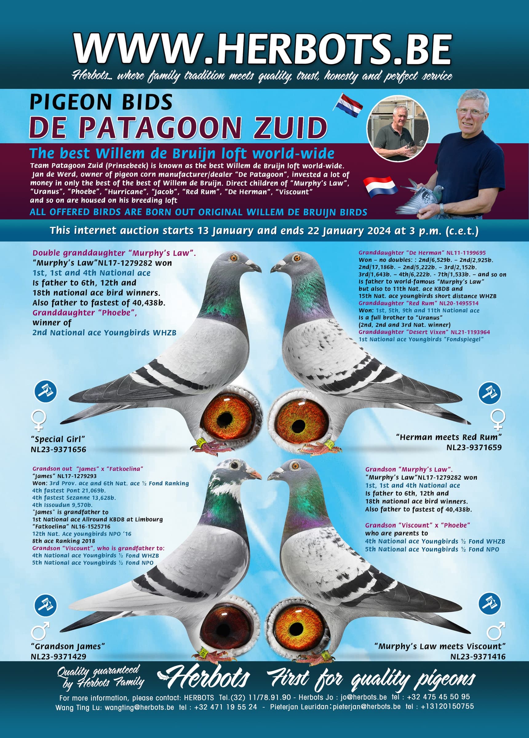 pigeon bids "team patagoon zuid" - the best willem de bruijn loft world-wide.