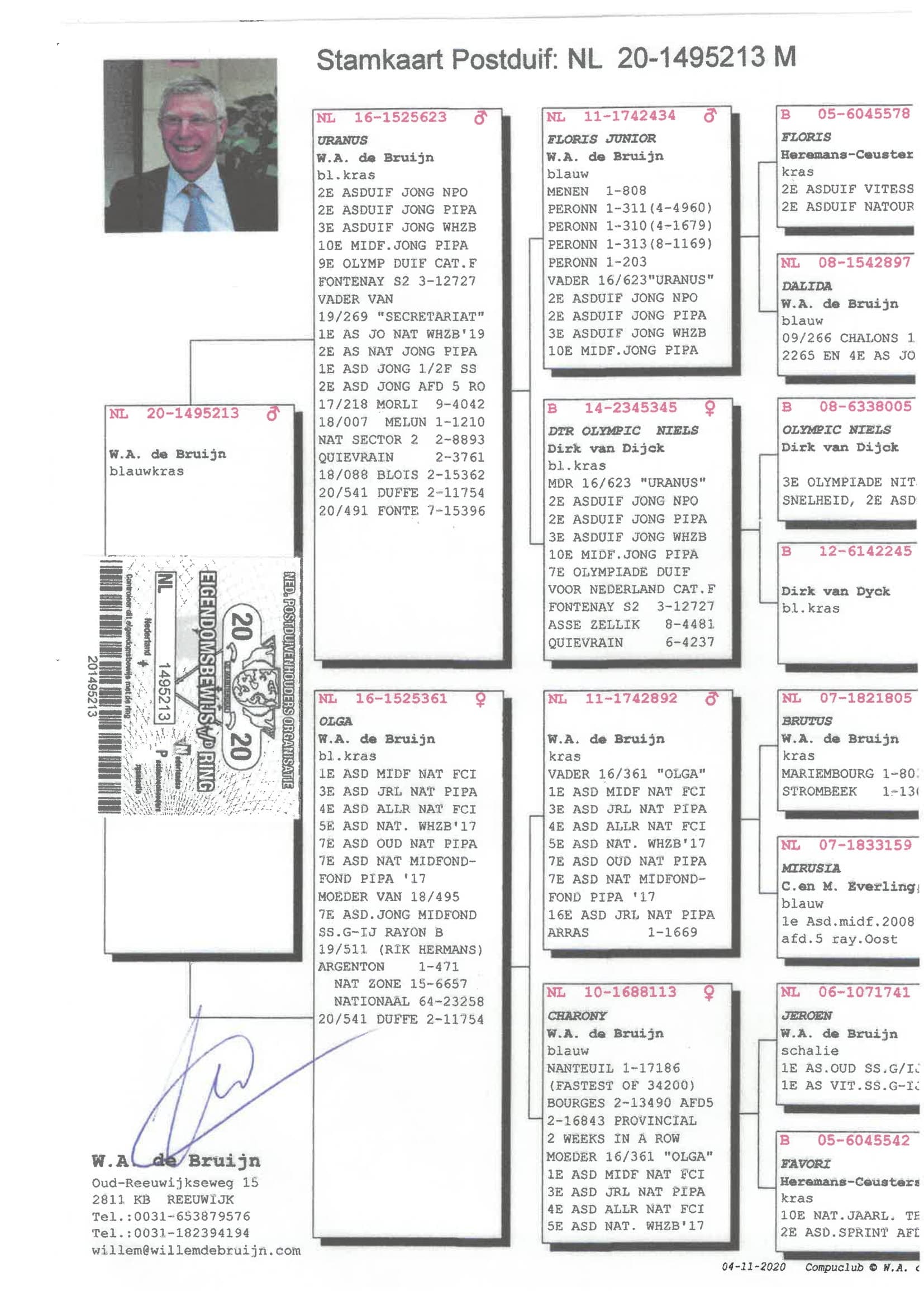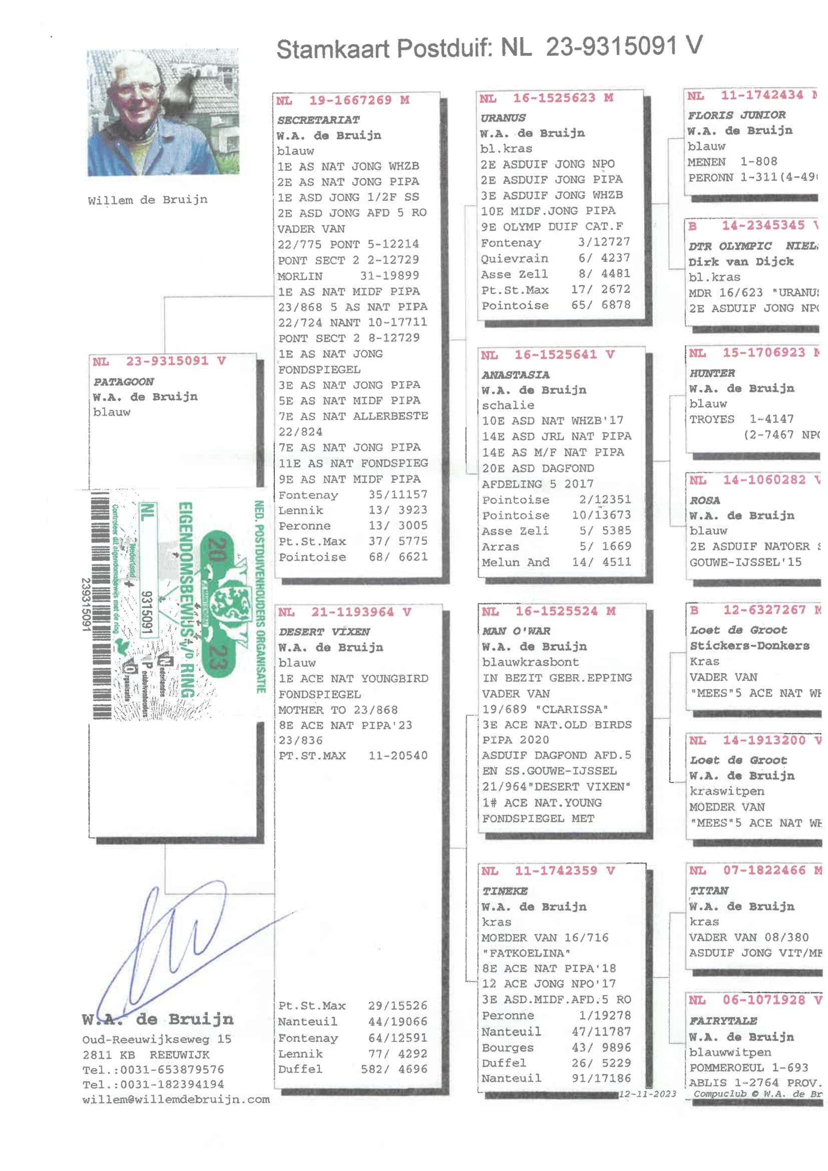 Éleveur : 100% WILLEM DE BRUIJN 纯威廉迪布恩血统