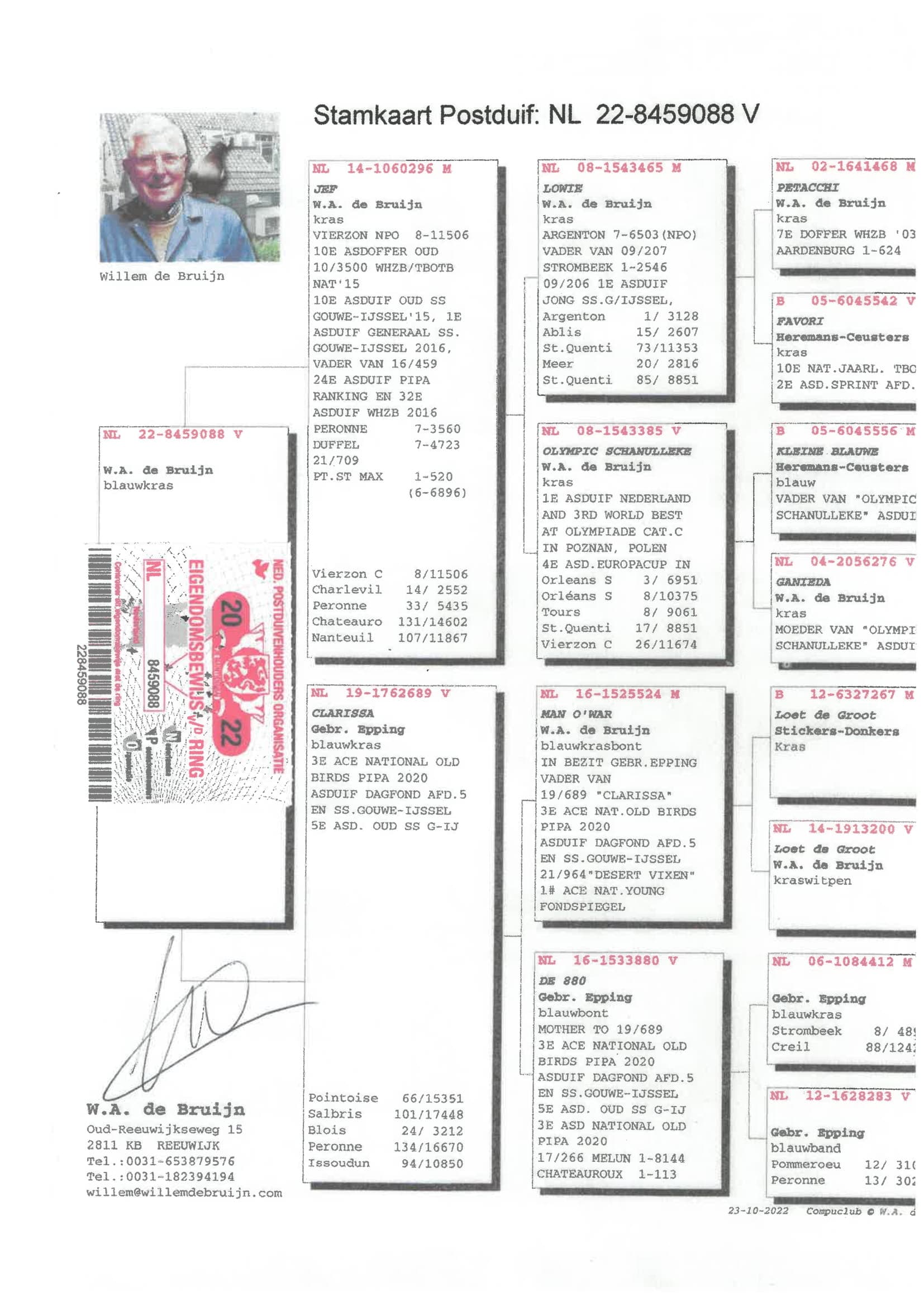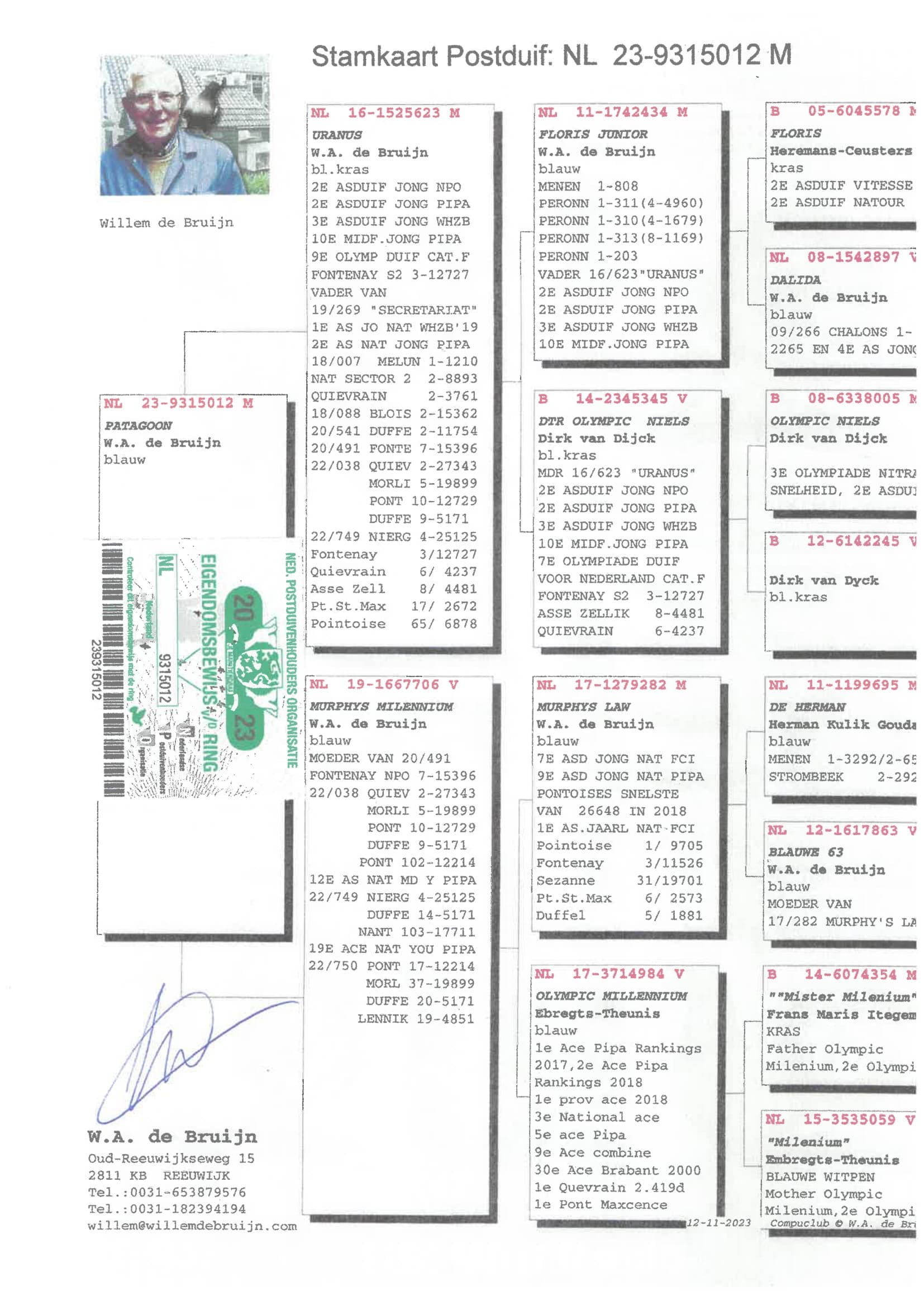 Éleveur : 100% WILLEM DE BRUIJN 纯威廉迪布恩血统