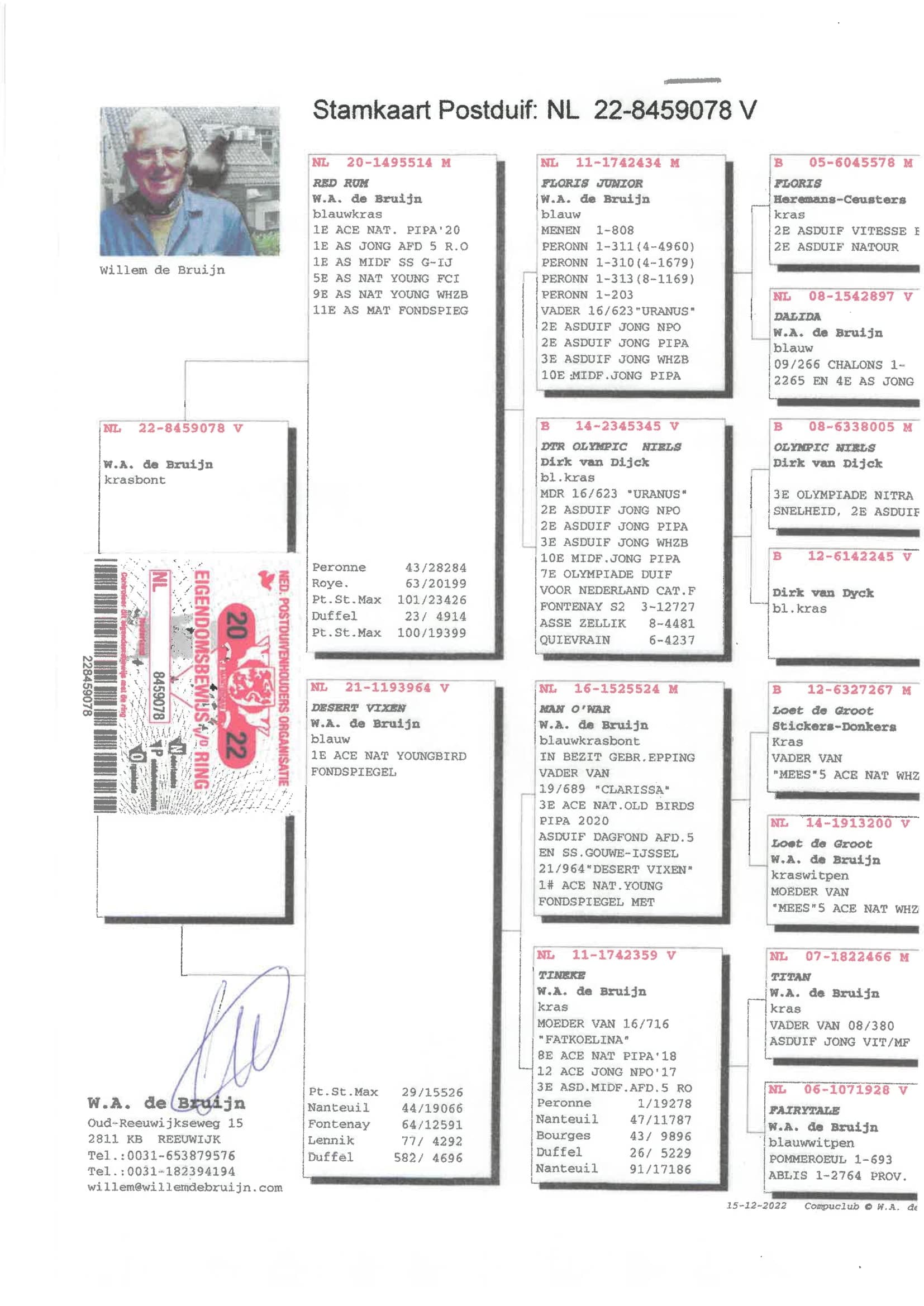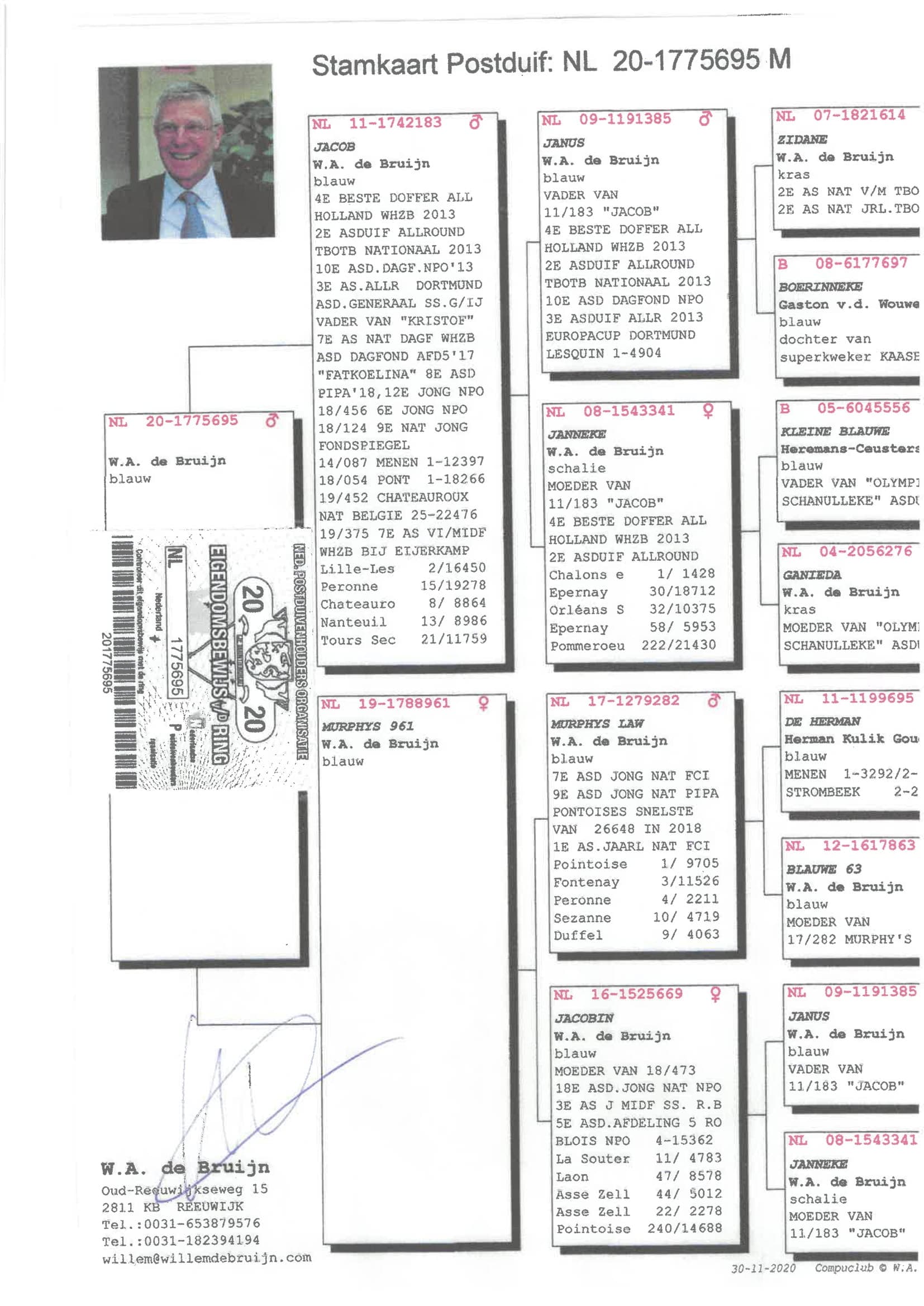 Éleveur : 100% WILLEM DE BRUIJN 纯威廉迪布恩血统