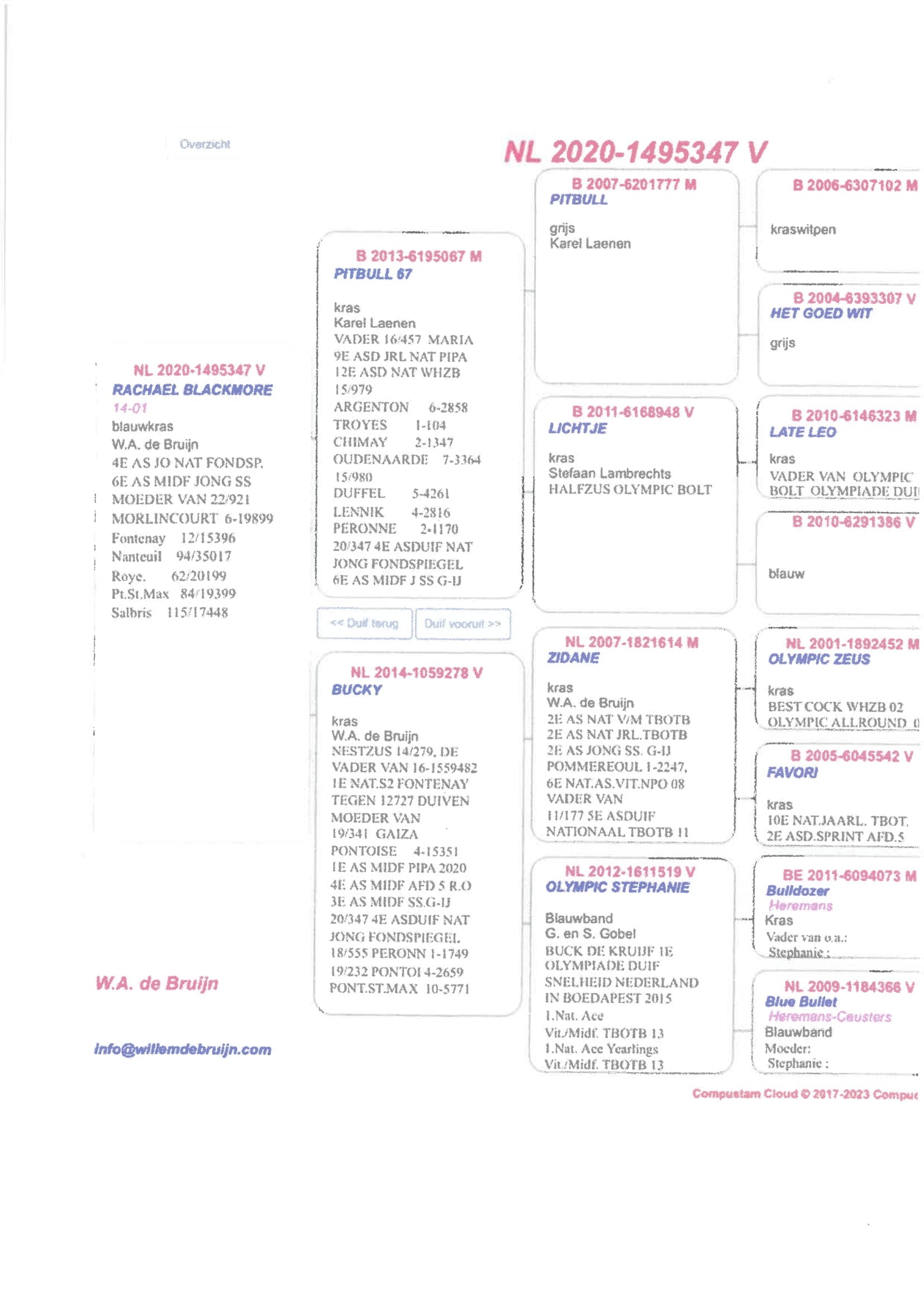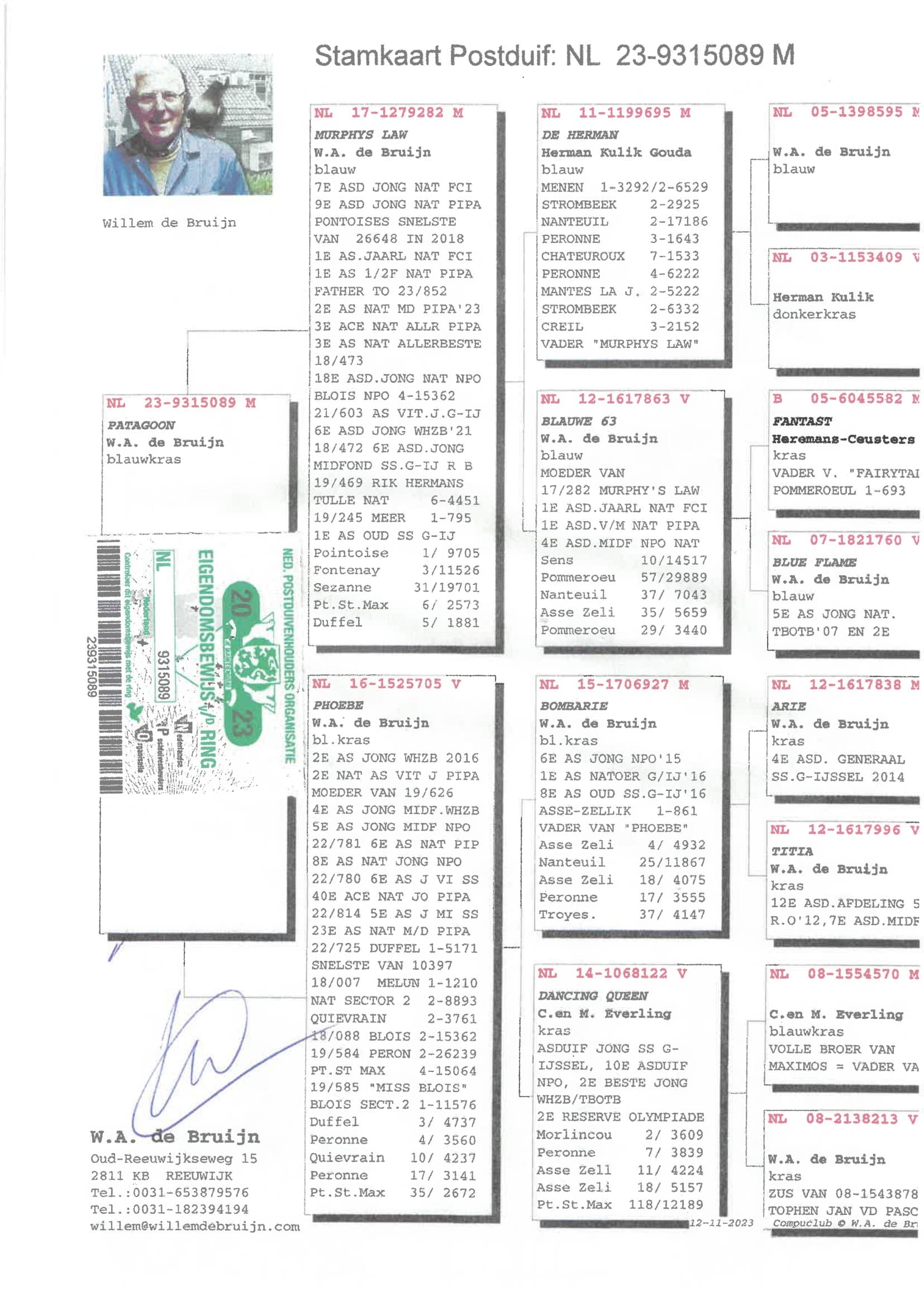Éleveur : 100% WILLEM DE BRUIJN 纯威廉迪布恩血统
