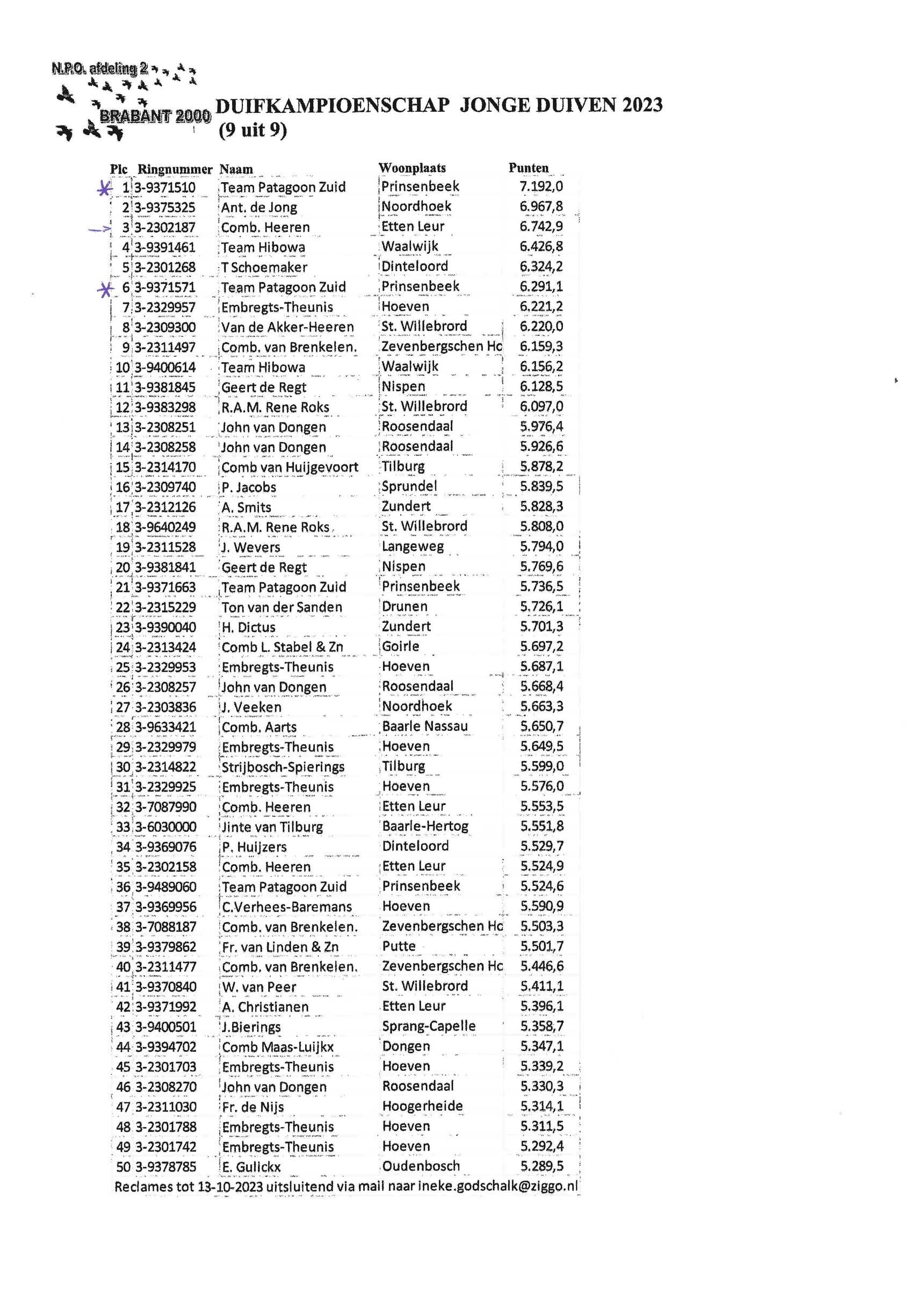 1st Prov. ace youngbirds “Brabant 2000” 2023