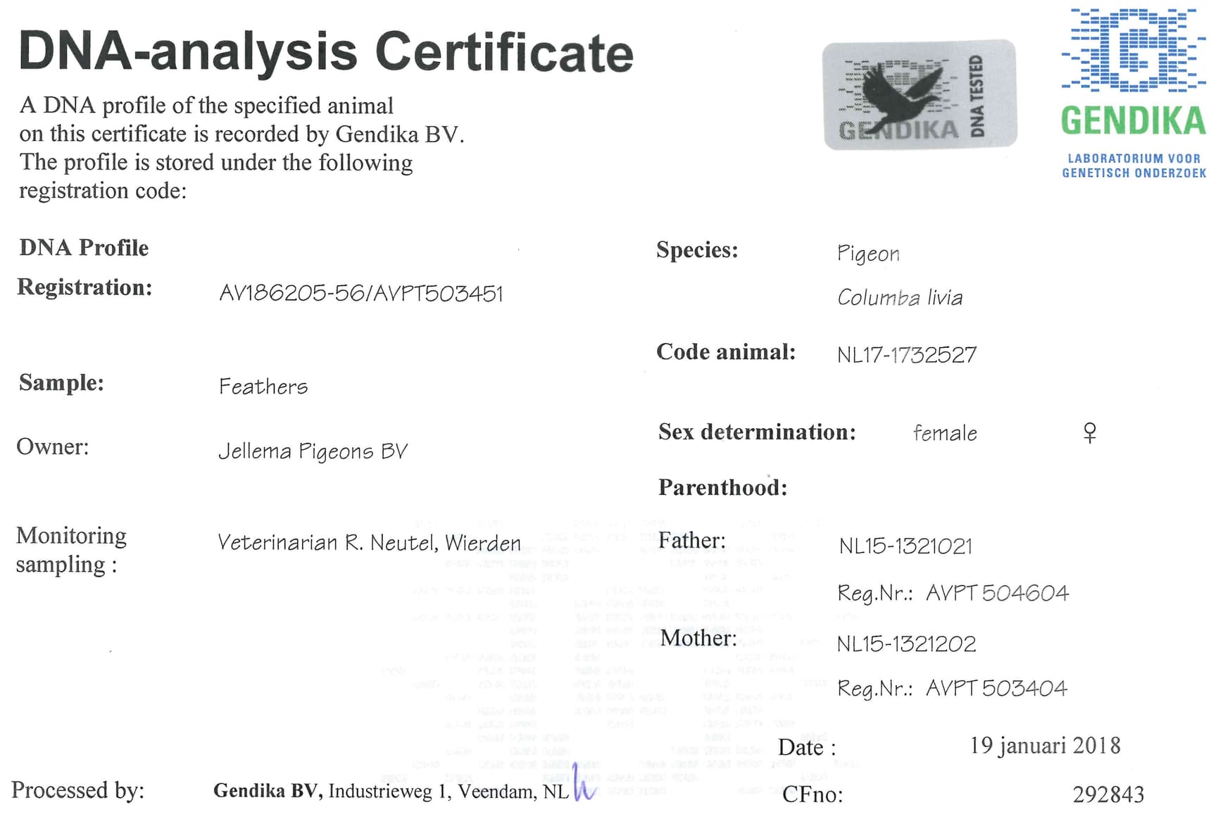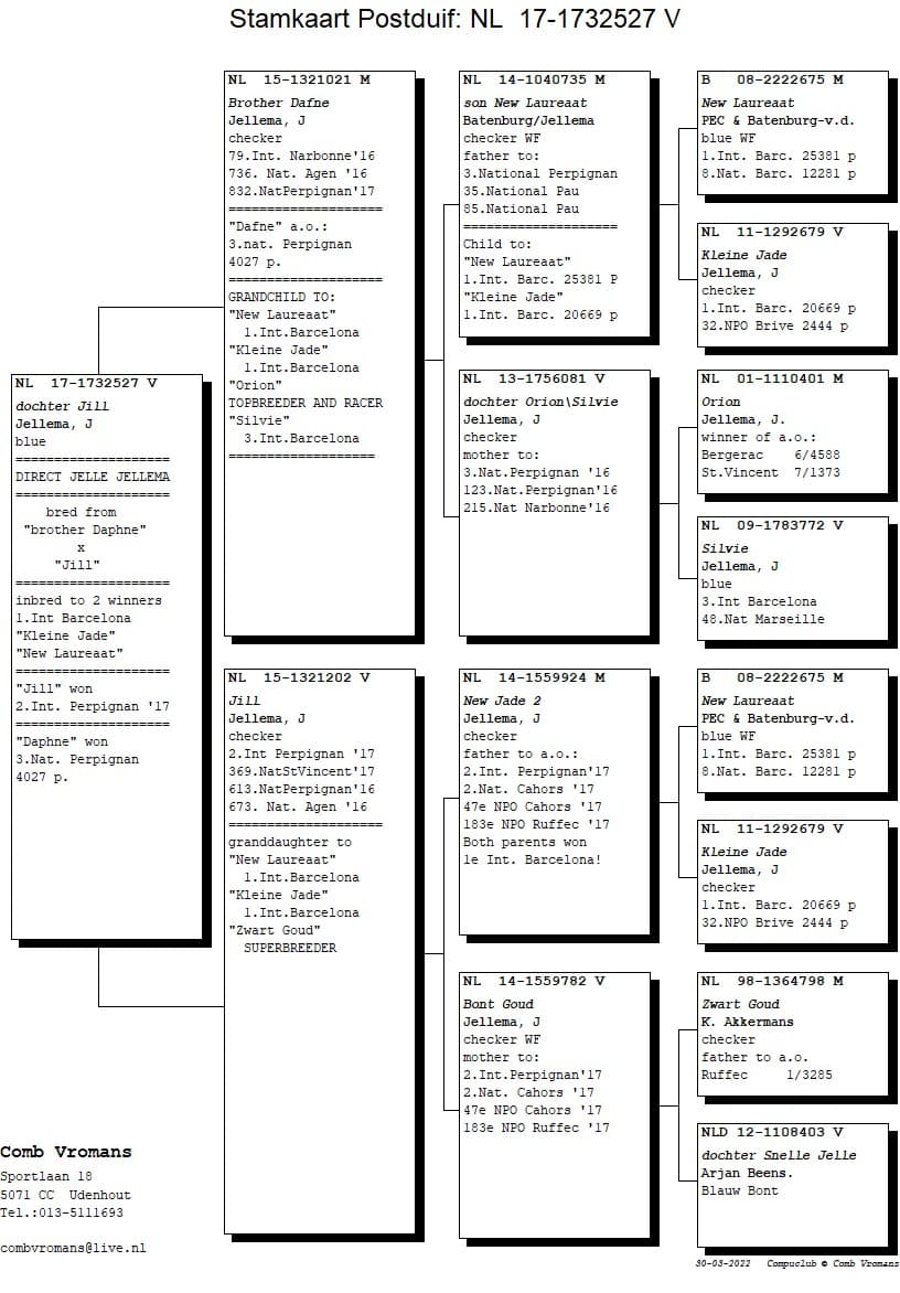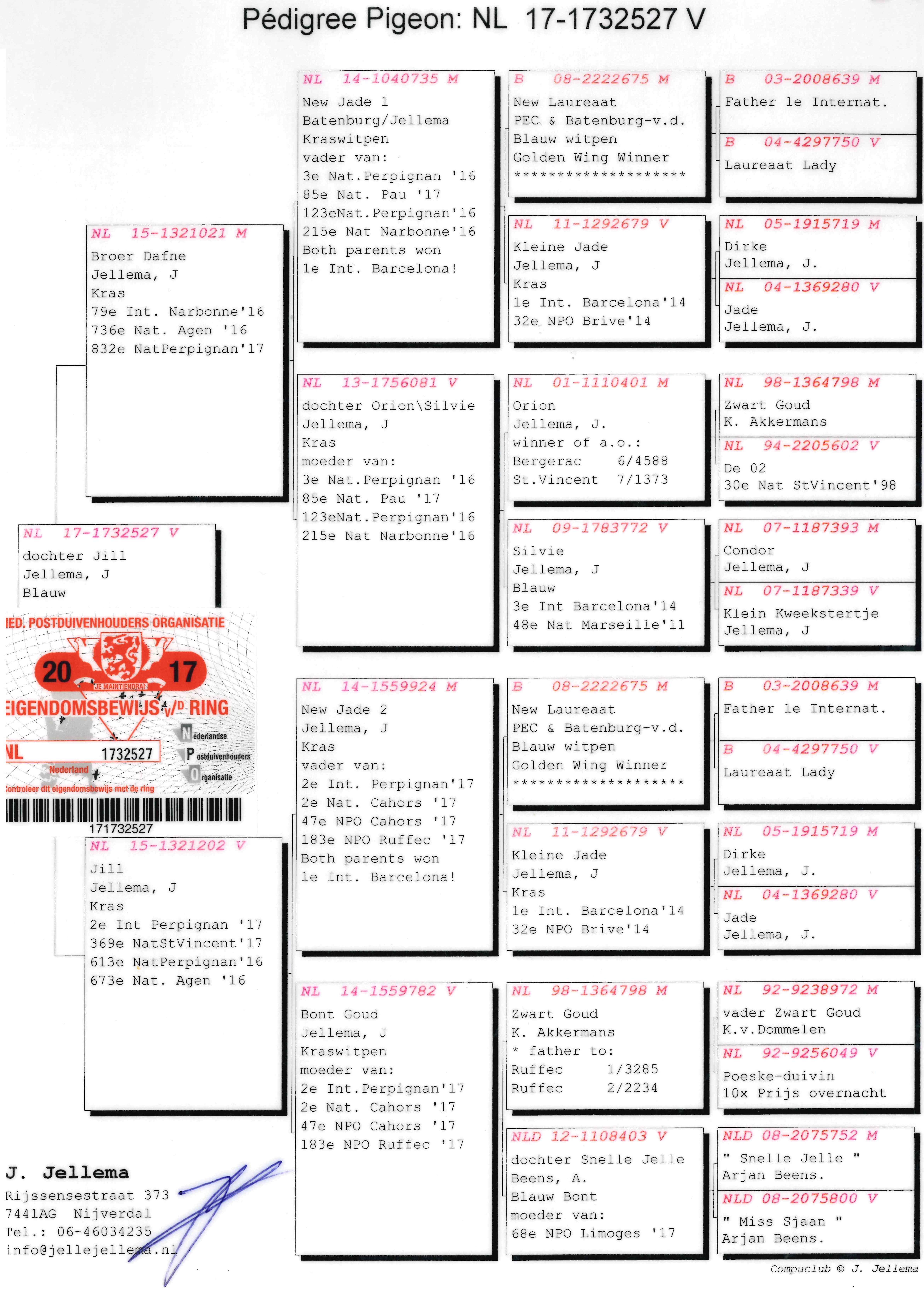Granddaughter “New Laureaat” (1st Internat. Barcelona 25,381b.) x “Kleine Jade” (1st Internat. Barcelona20,669b.)