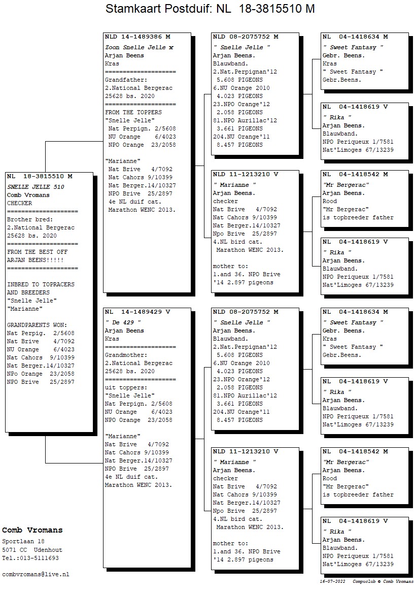 Direct daughter “Snelle Jelle”x “Marianne”