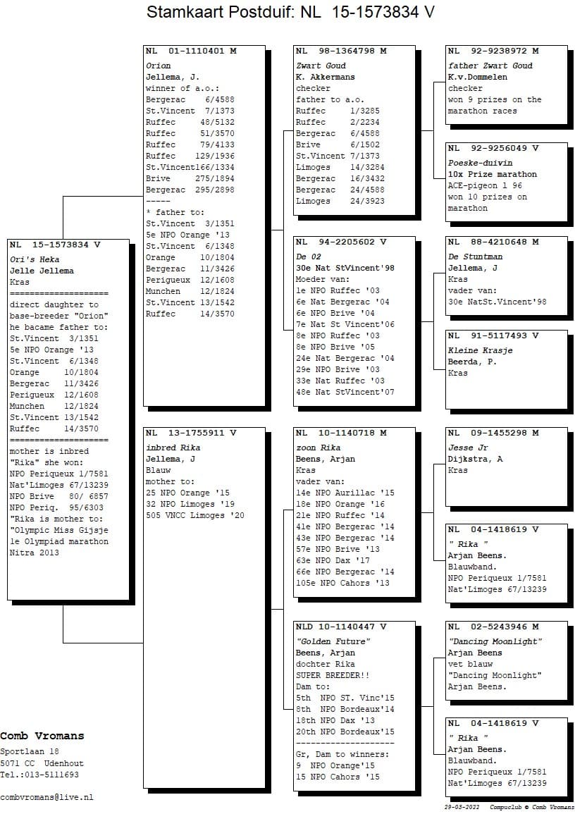 Won: 6th Bergerac 4,588b. – 7th St. Vincent 1,373b. - 48th Ruffec 5,132b. – 51st Ruffec 3,570b. – 79th Ruffec 4,133b. – and so on