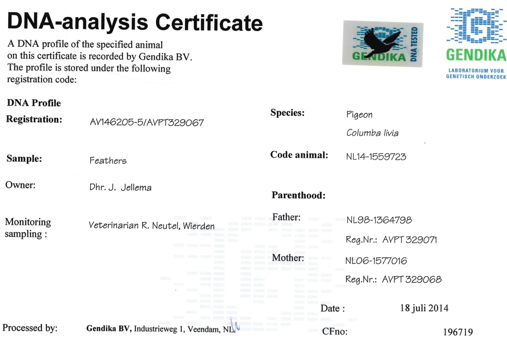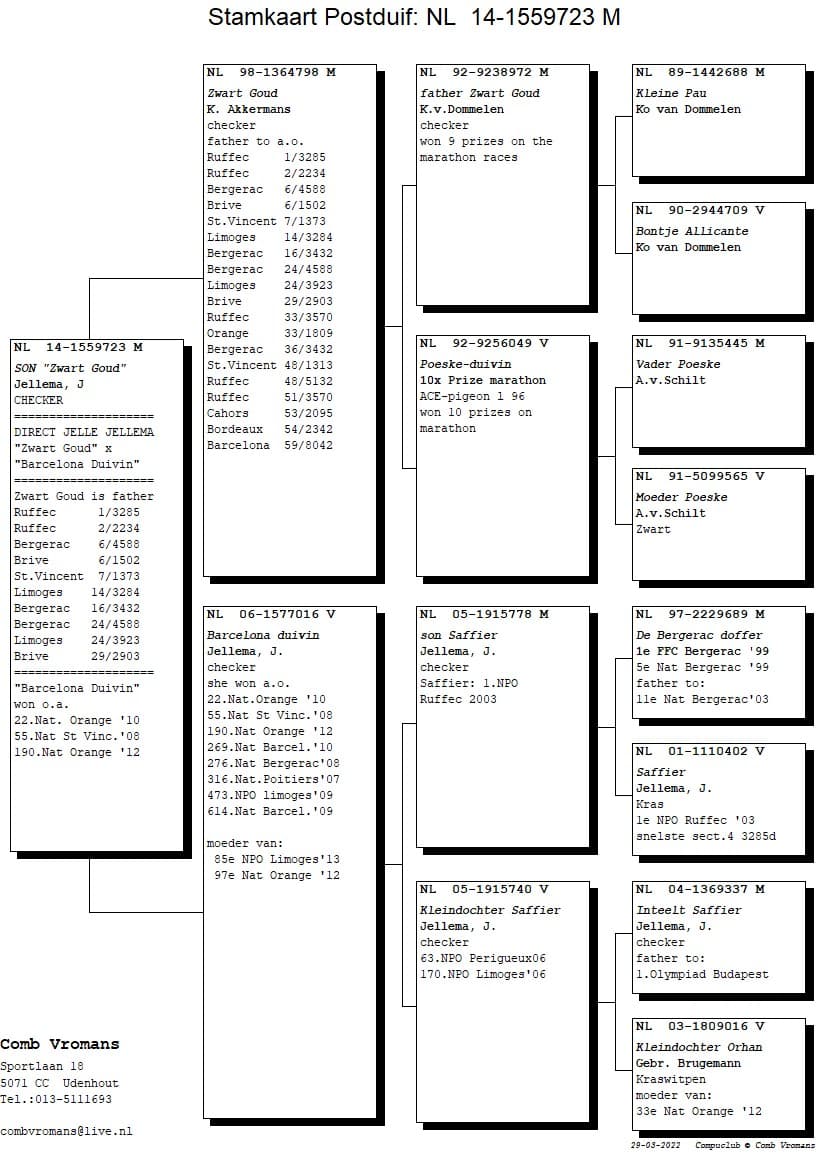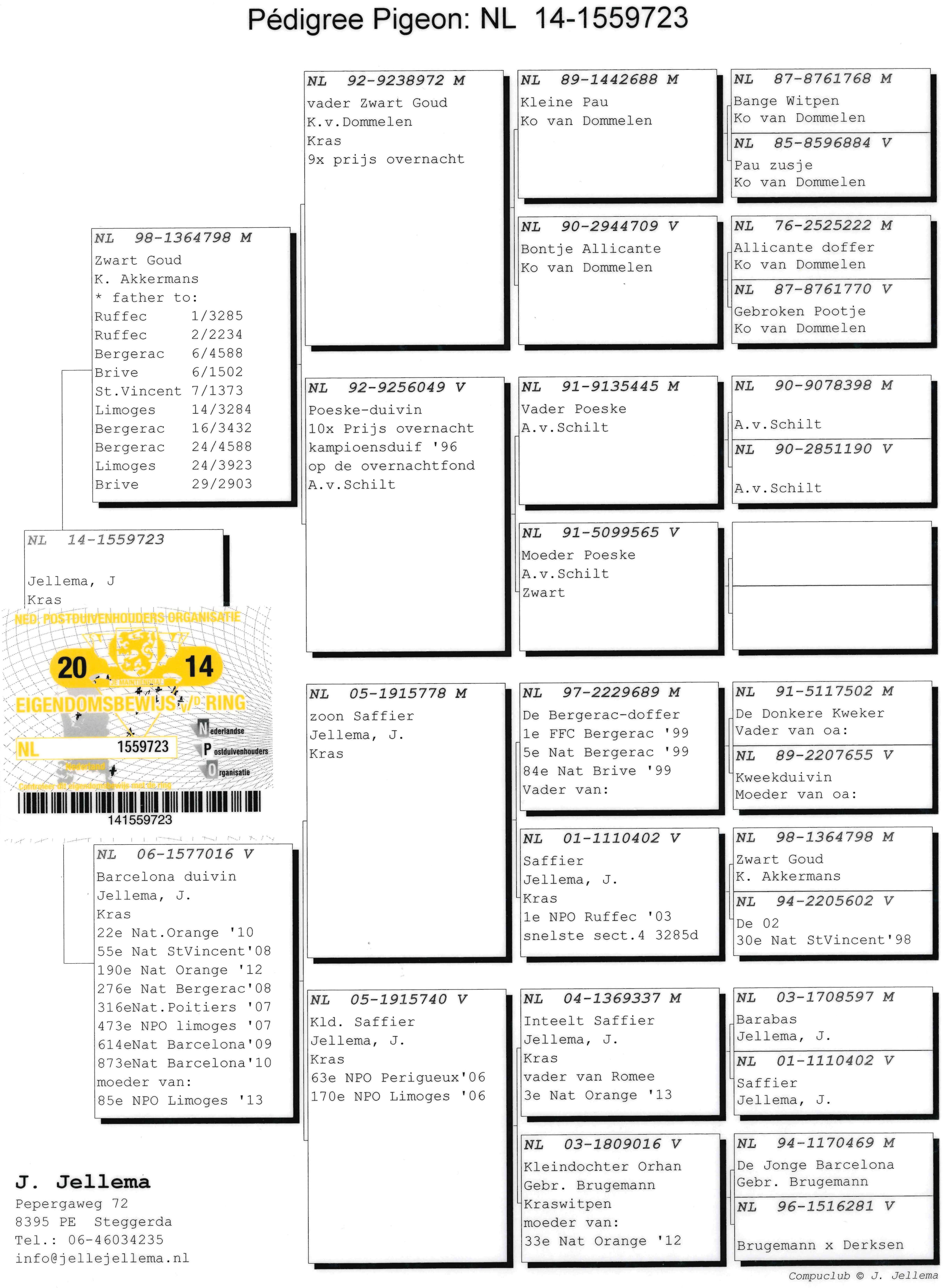 Born out “NL92-9238972” (Ko Van Dommelen) x “Poeske duivin” (won 10 prizes on Marathon)