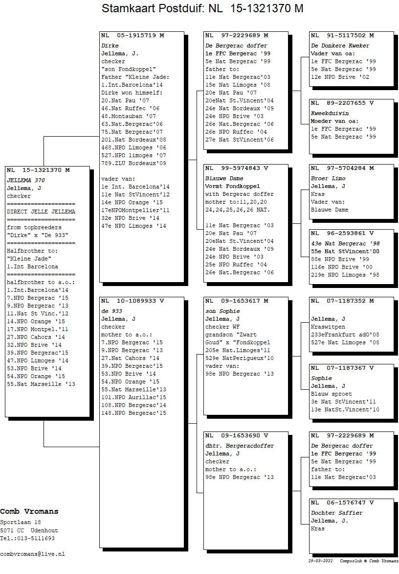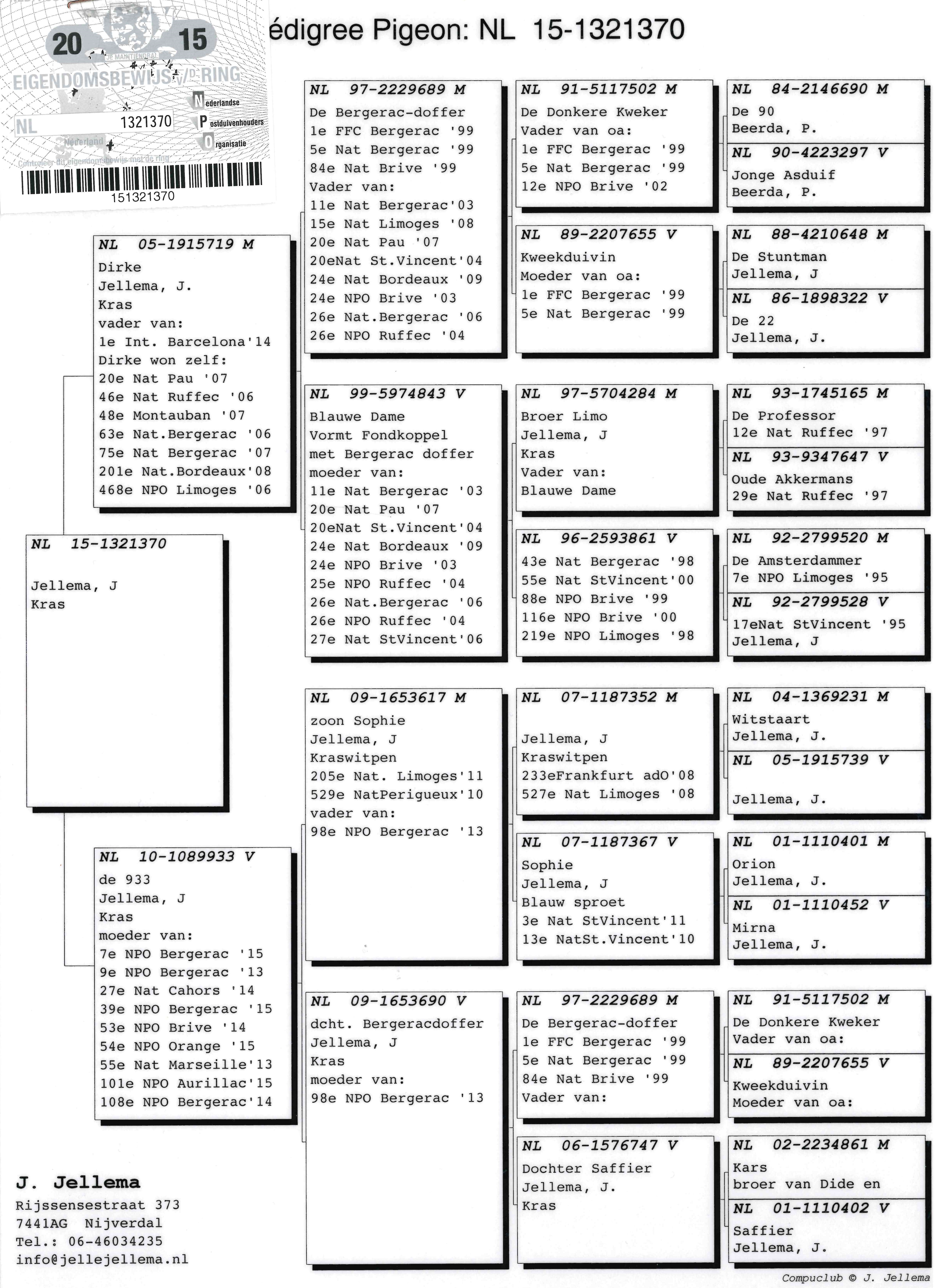 Direct son “Bergerac doffer” (5th Nat. Bergerac ’99) x “Blauwe Dame”