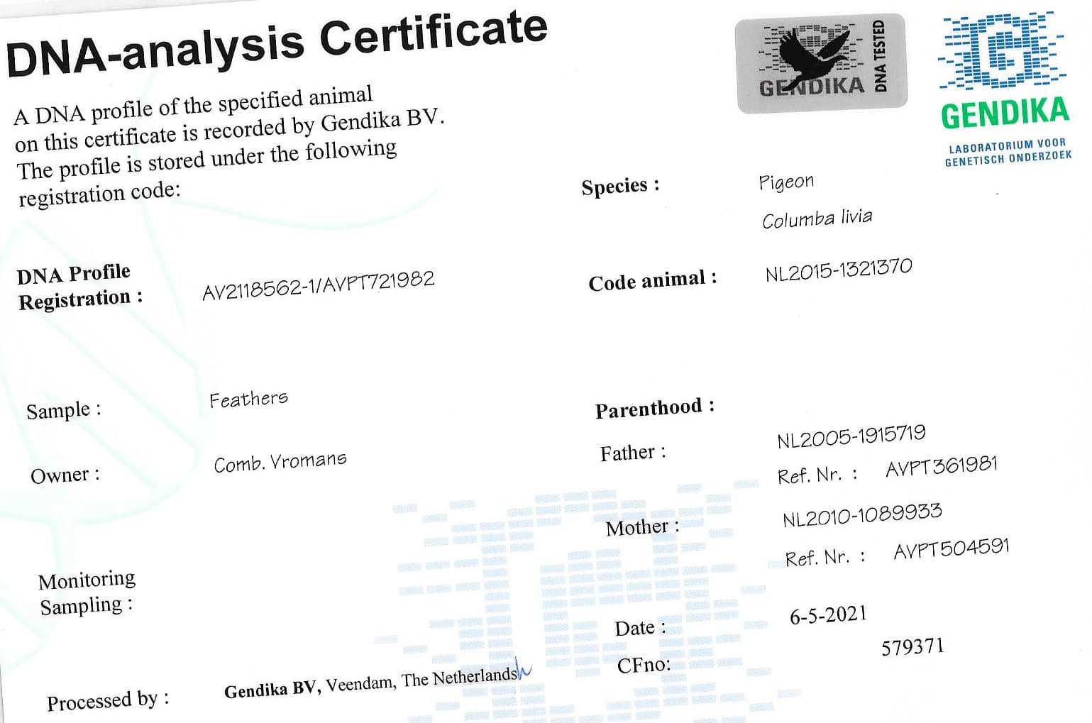 Born out “Son Sophie” (grandson “Zwart Goud”) x “Daughter Bergerac doffer” (daughter 5th Nat. Bergerac ’99)